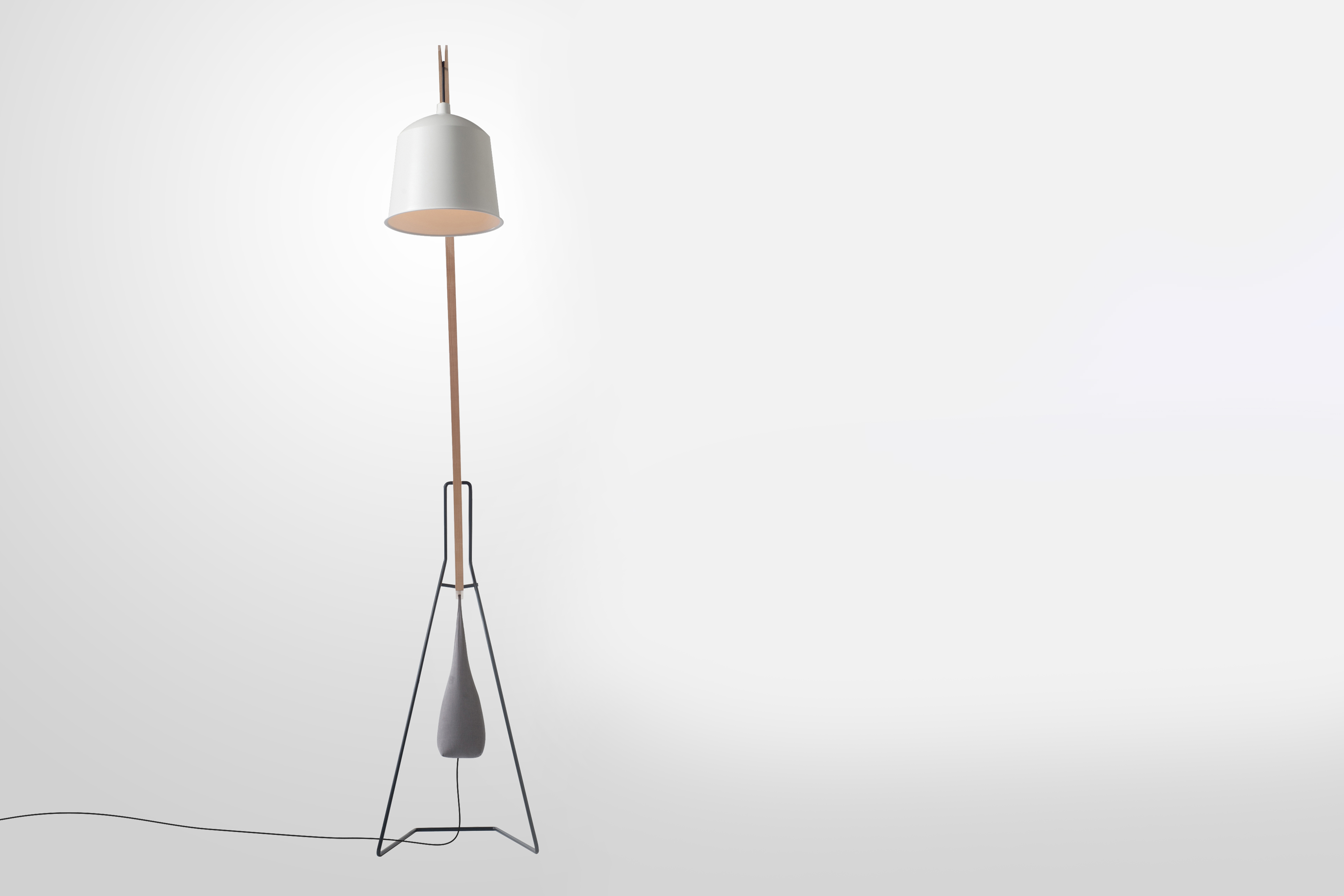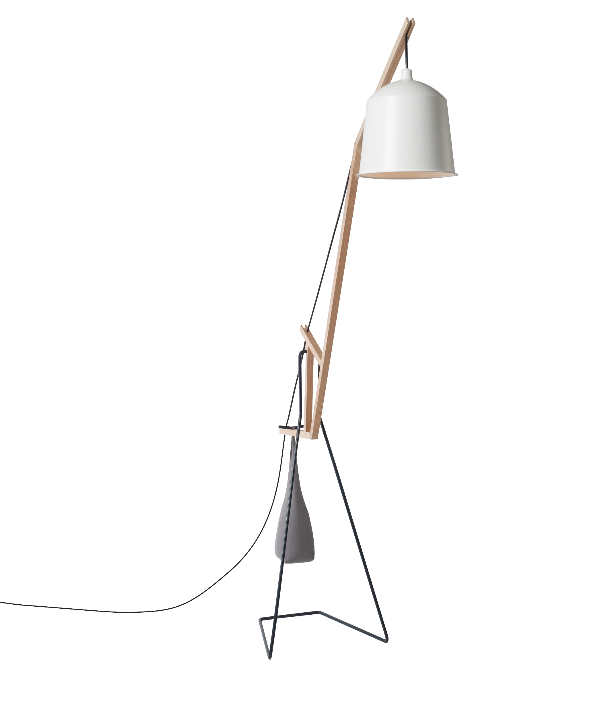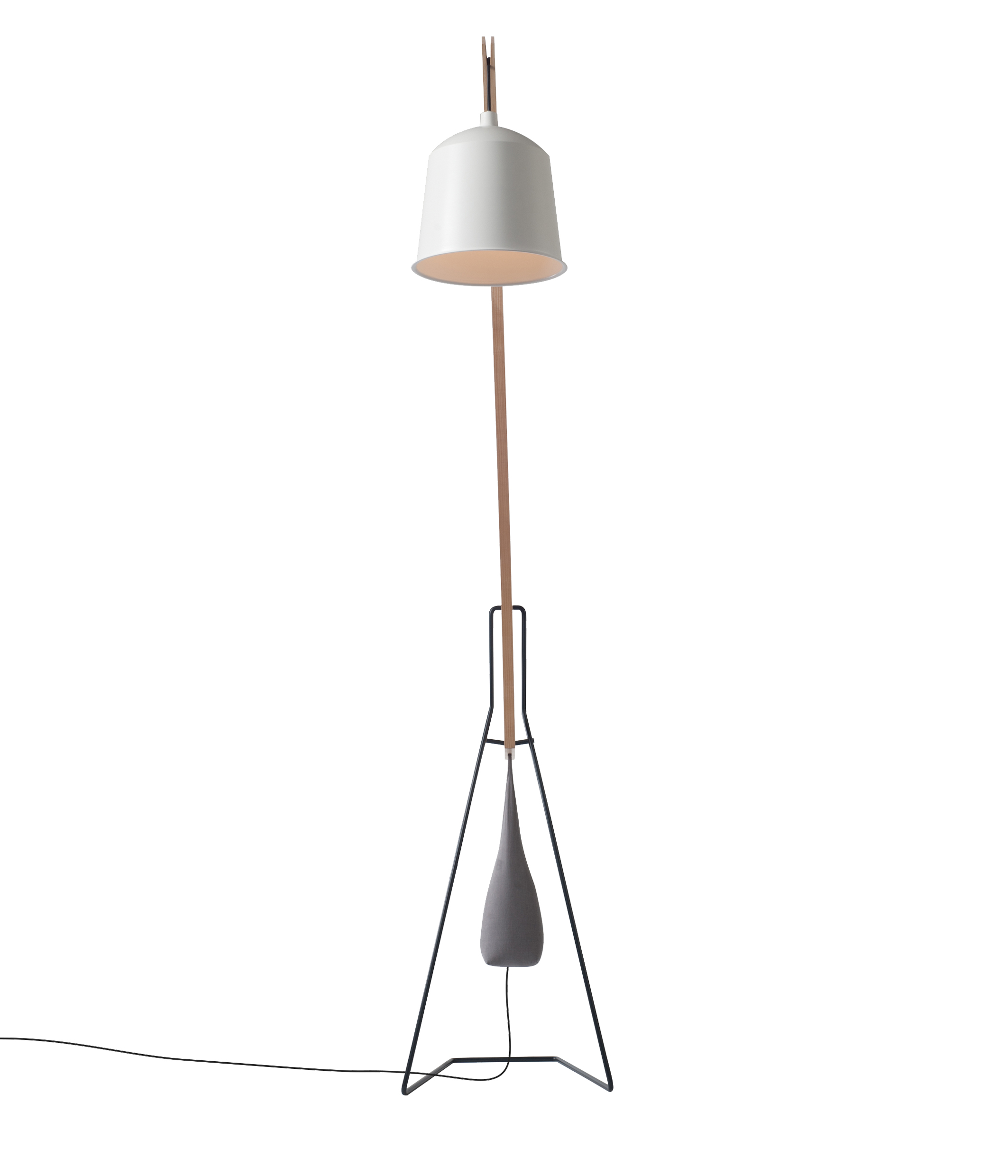 Una lámpara de pie se basa en el mecanismo simple de una viga equilibrada.