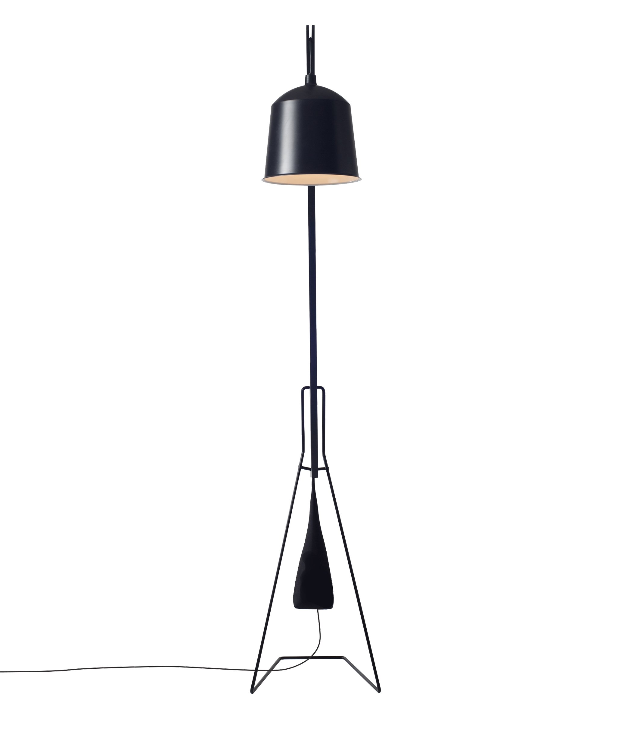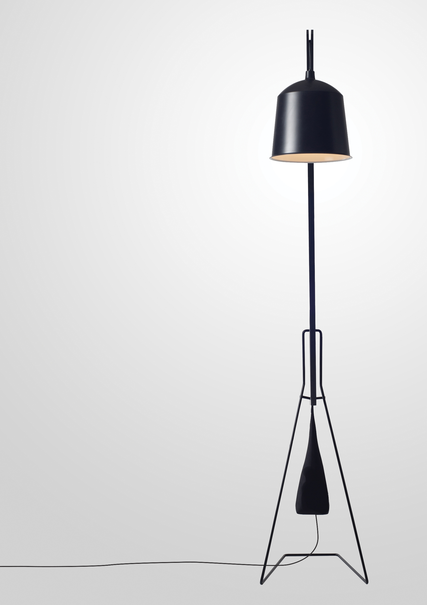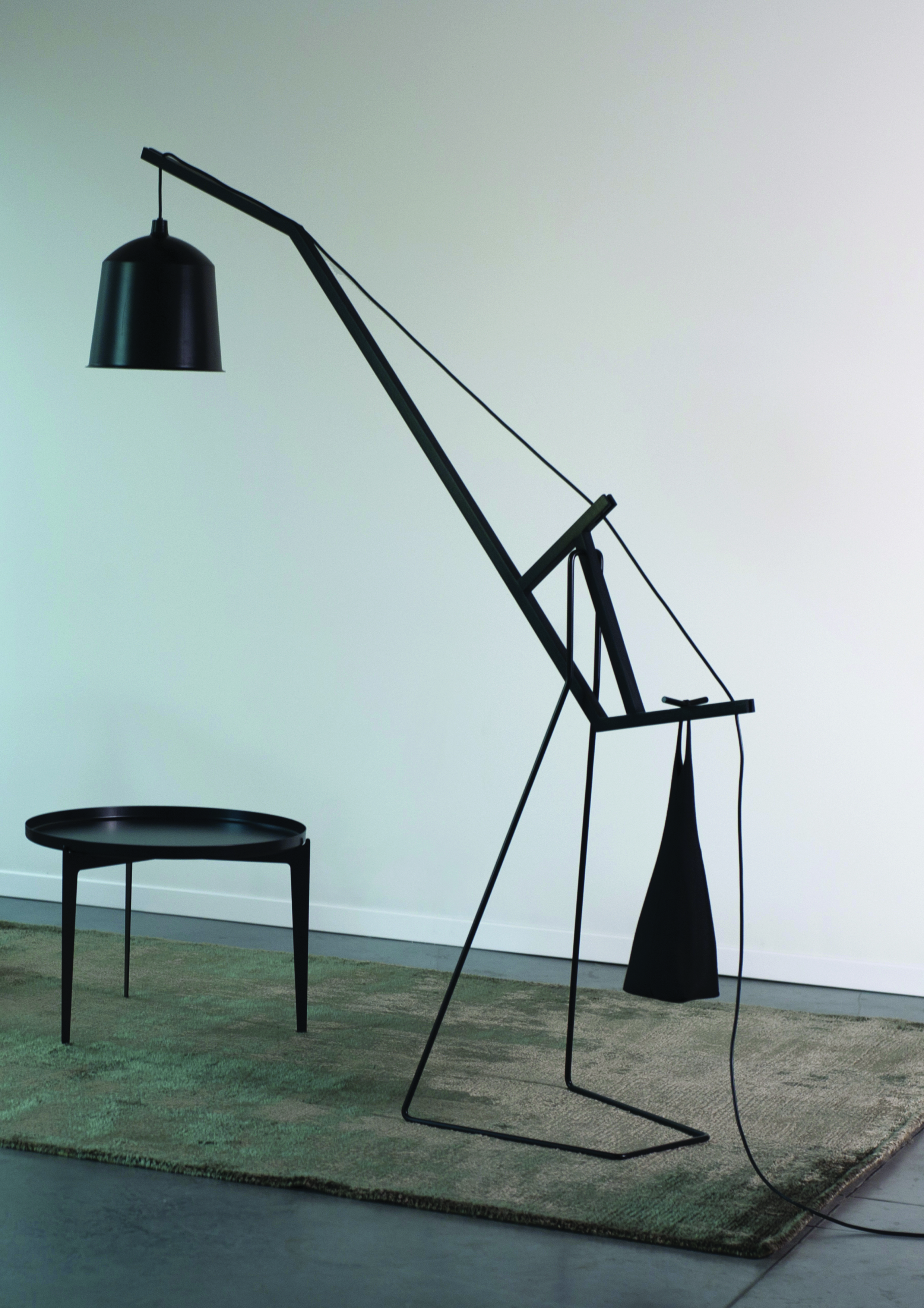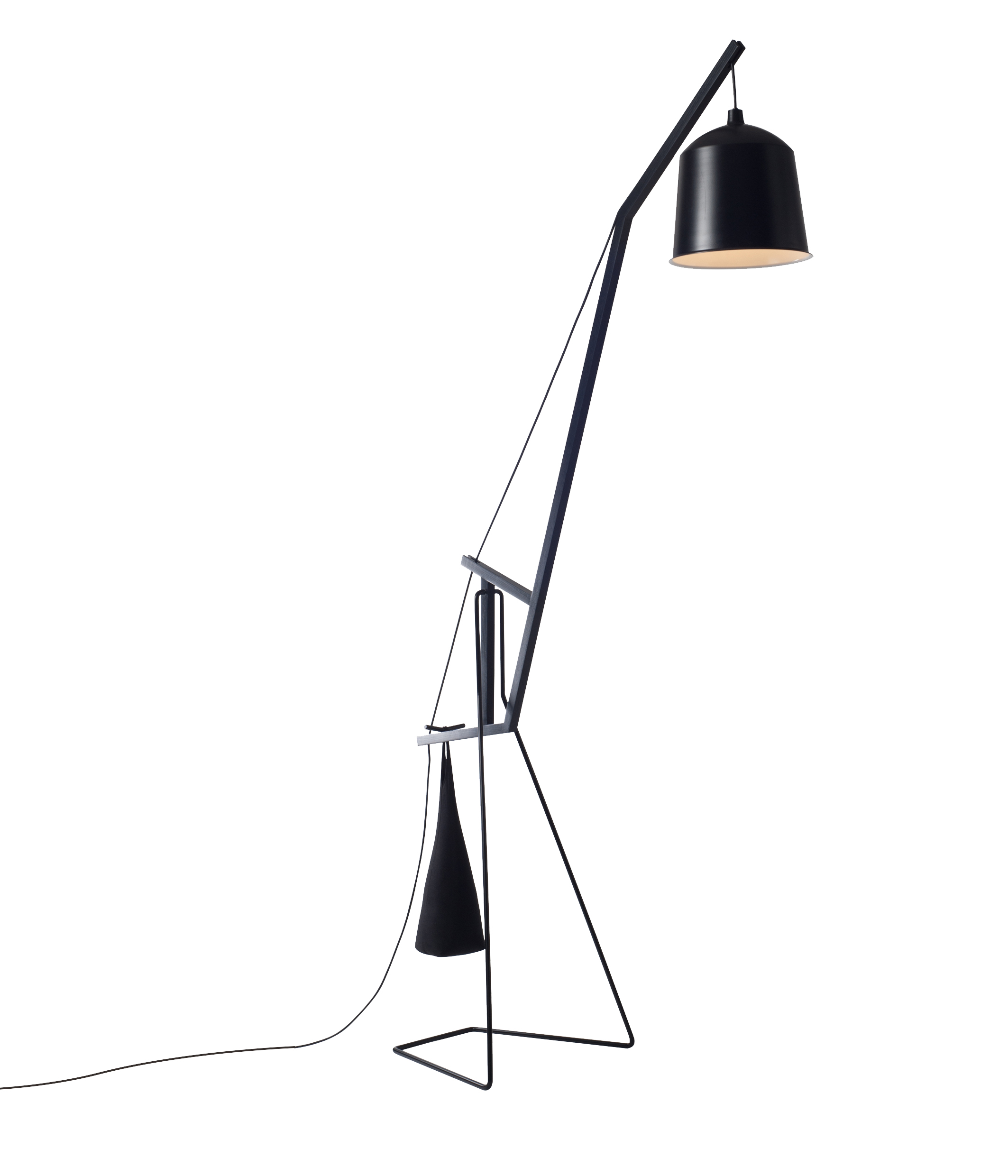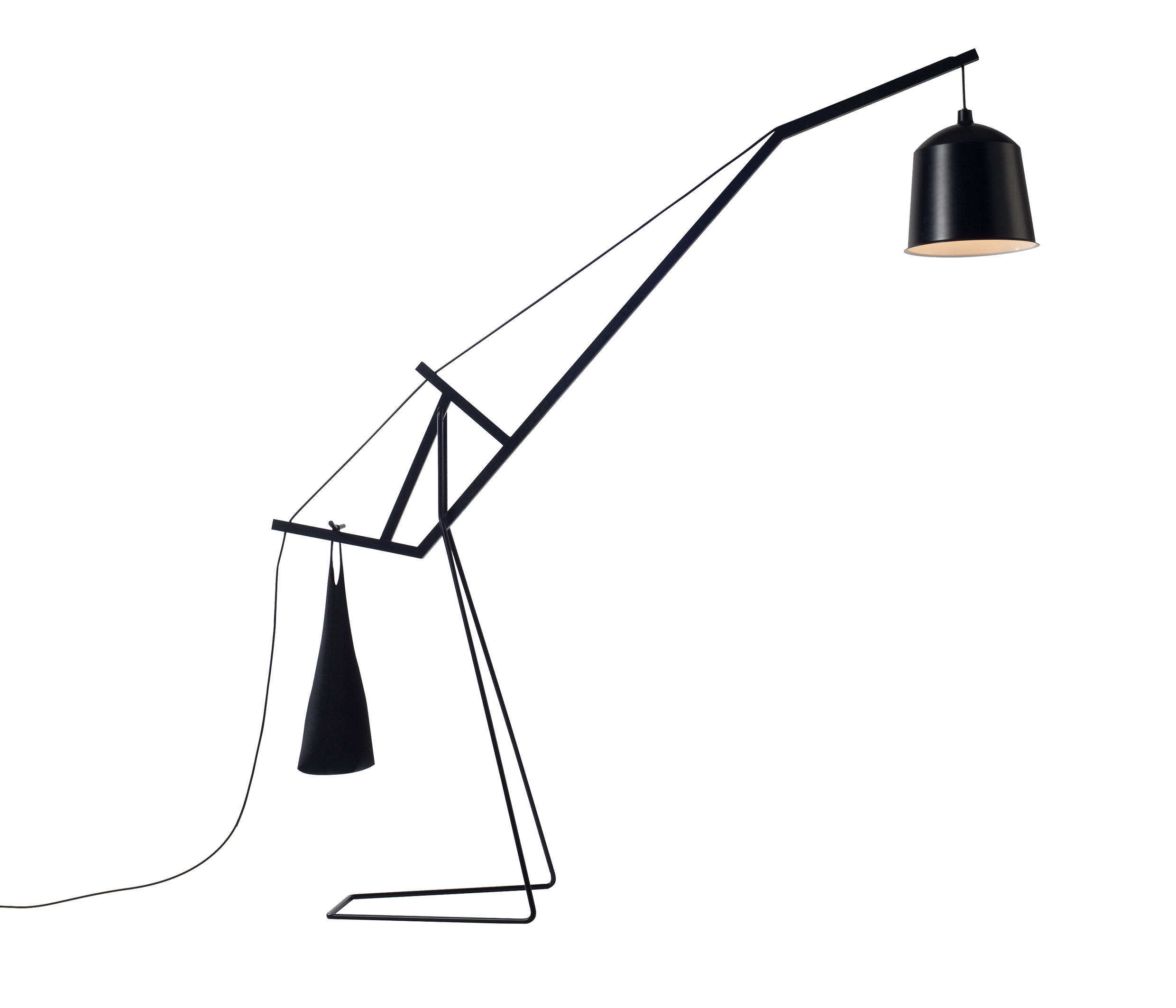 Una lámpara de pie se basa en el mecanismo simple de una viga equilibrada.