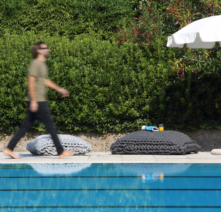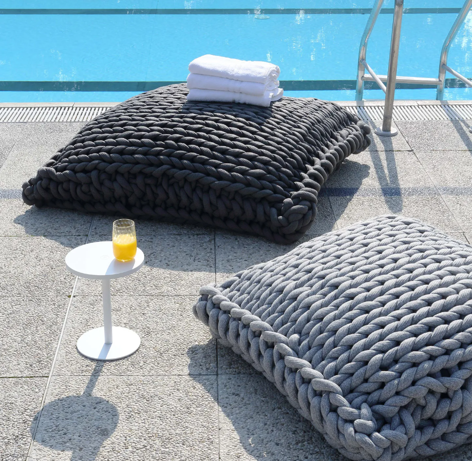 ROXY es un cojín maxi elaborado artesanalmente con cuerda anudada a mano, diseñado para brindar una comodidad generosa y un estilo audaz.