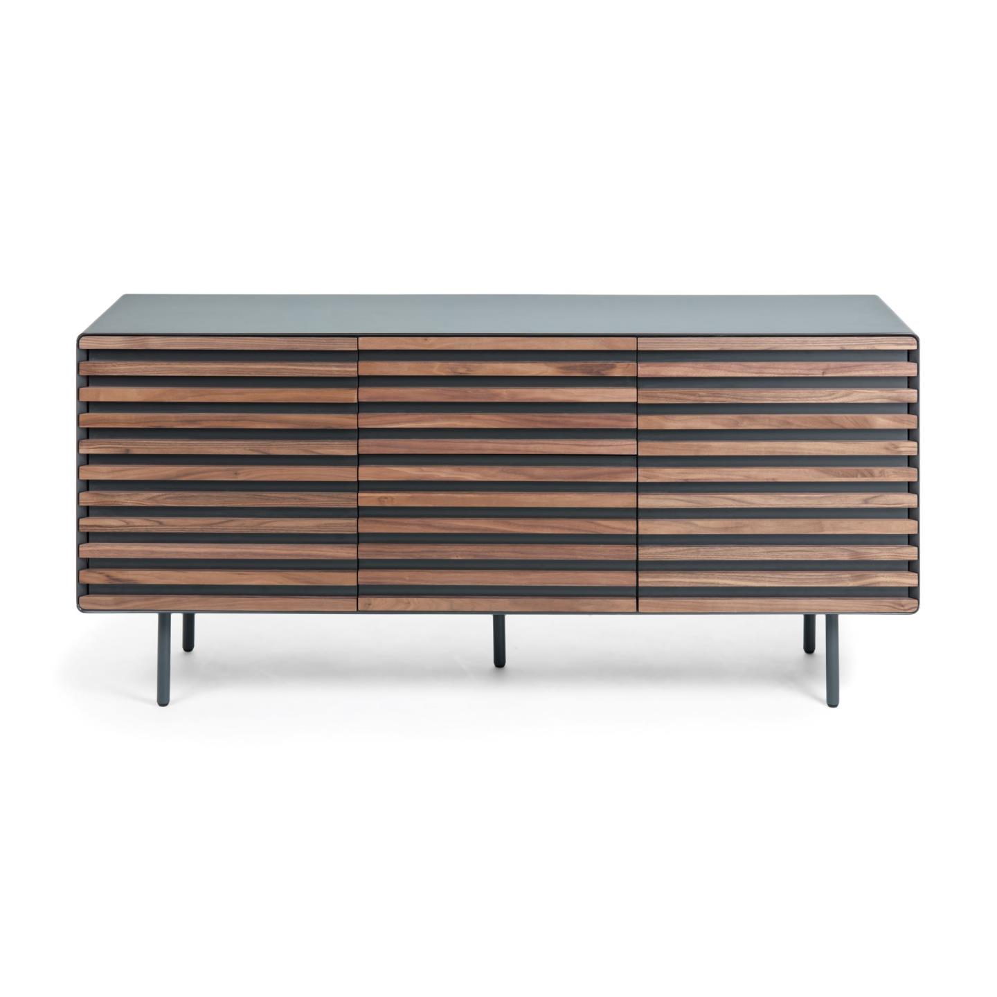 | Material | 72% MDF E0 (tablero de fibra de densidad media con bajas emisiones de formaldehído clase E0), 14% Acero, 14% Chapa de nogal (Juglans nigra) |