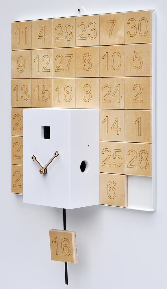 Reloj de cuco con calendario (36 x 36 x 10 cm) de diseño moderno y funcional. Ideal para el salón, el estudio o el dormitorio, combina practicidad y estilo, aportando un toque creativo y distintivo al espacio.