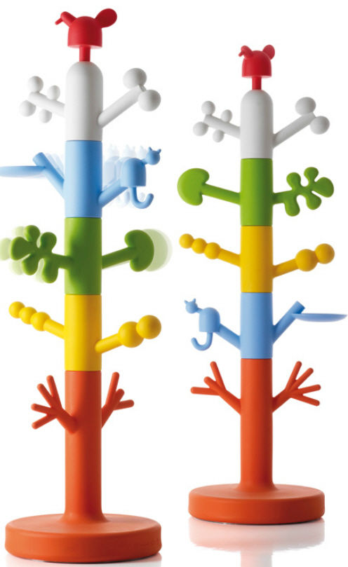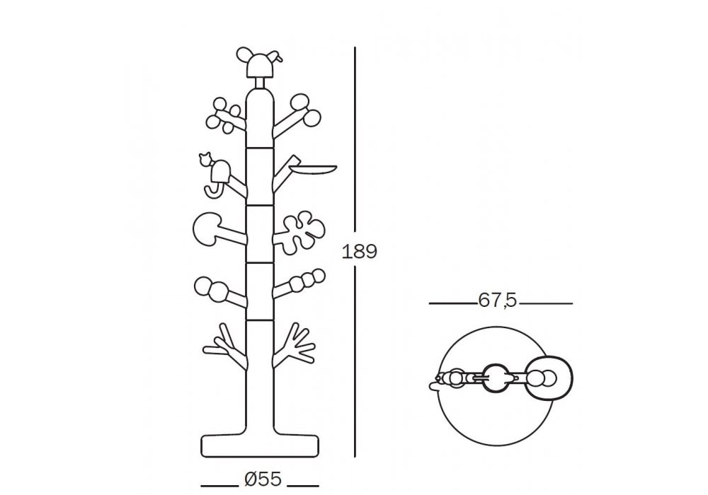 Perchero de polietileno. Lastre y estructura interna en acero galvanizado en frío. La base y los dos primeros elementos en la parte superior son fijos, mientras que los tres intermedios son intercambiables.