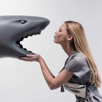 ¿Quién dice que todos los tiburones deberían tener un alma feroz? ¡Este ciertamente no es el caso de nuestro querido Sr. Holder! Sintiéndose un poco miserable debido a su incapacidad para nadar, le pidió a Studio Job que usara sus superpoderes para convertirlo en un elemento de estilo de vida y estar en todas partes ... ¡lejos del mar y cerca de ti! Killer es un soporte con forma de tiburón que se puede utilizar como paragüero, cesto de papel, enfriador de champán o cualquier otro uso en el hogar y más allá.