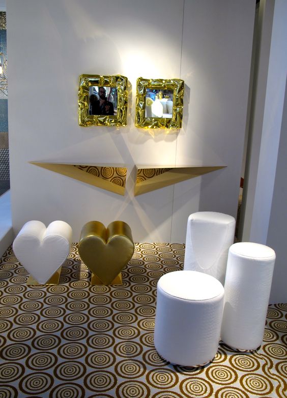 Asiento icónico en espuma de poliuretano cubierto en 100% algodón. Base en acero inoxidable pulido. Sillón emocional con perfil en forma de corazón , mueble colorido y original para recrear una atmósfera romántica en cualquier ambiente.