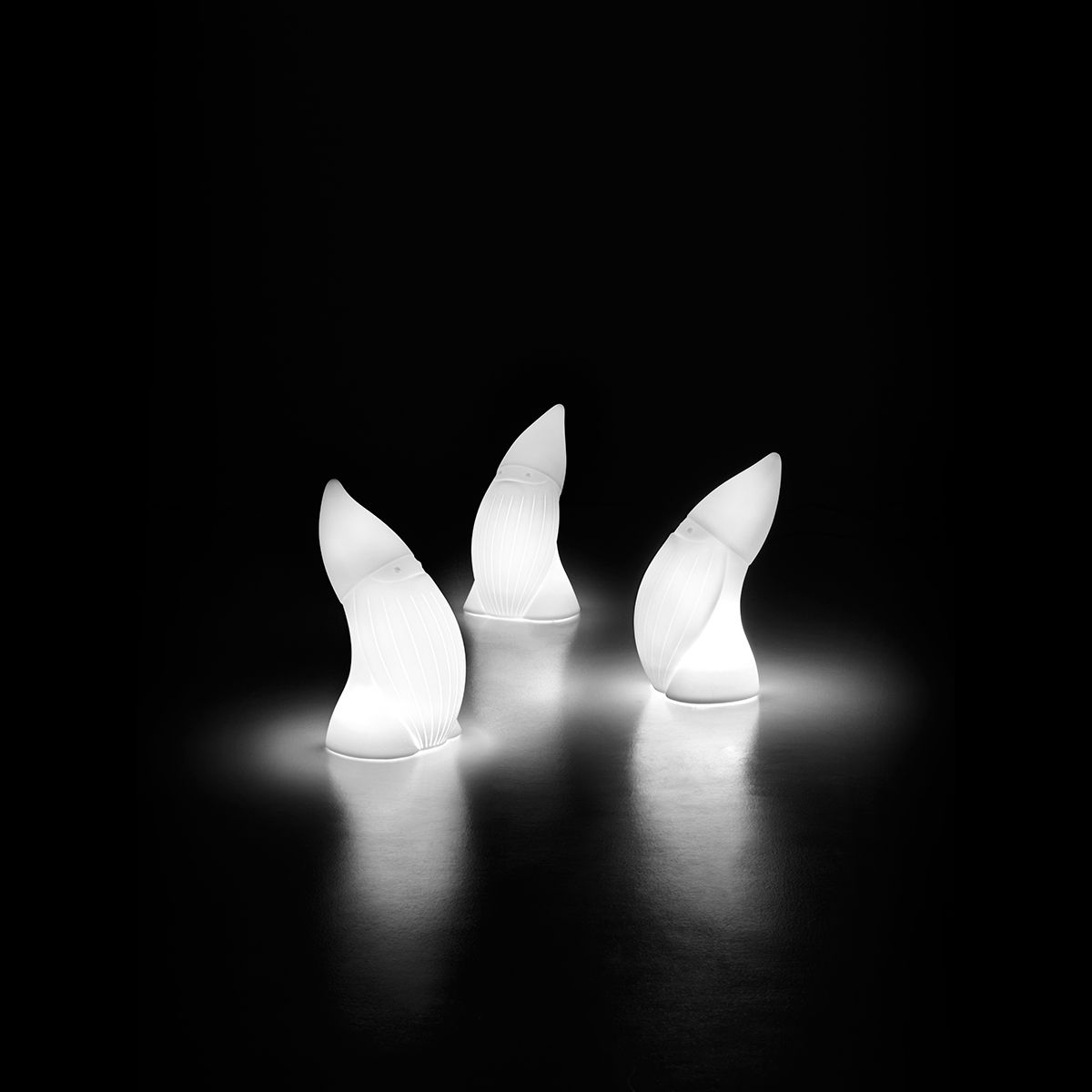 Pequeña escultura de luz adecuada para ambientes interiores, fácil de transportar y versátil.