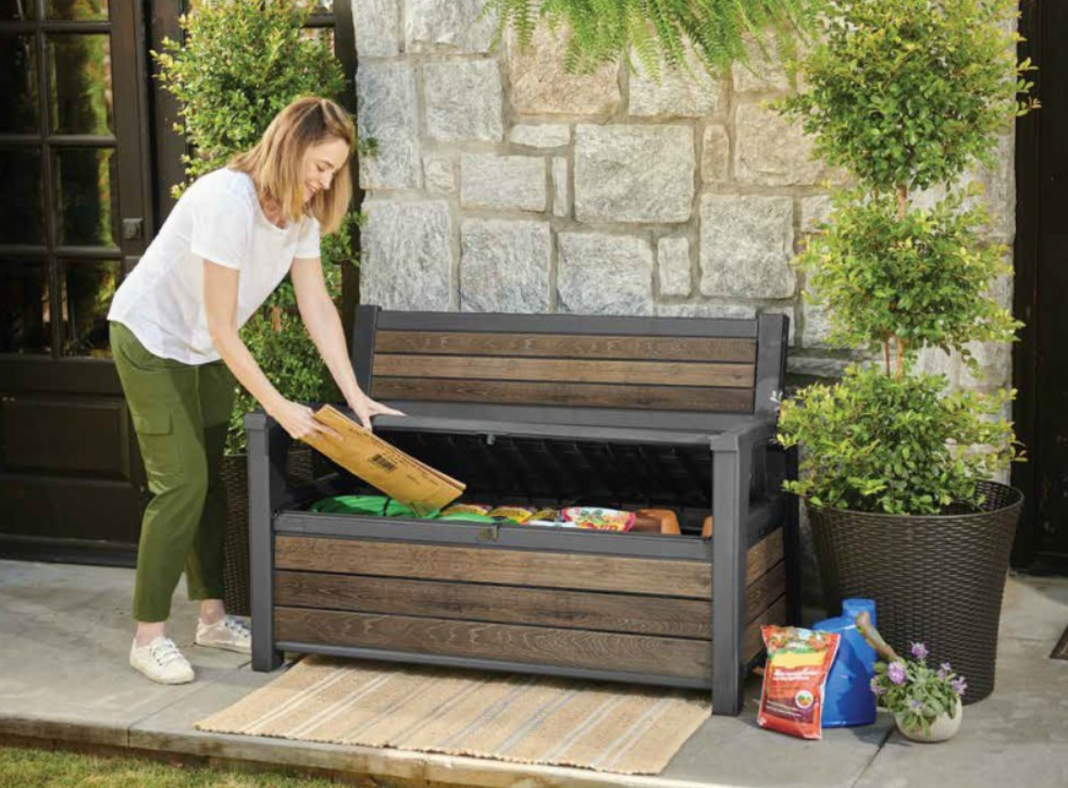 Además de ofrecer cómodos asientos para dos personas , integra un compartimento de almacenamiento de 227 litros , perfecto para guardar cojines, juegos o accesorios de jardín de forma ordenada y protegida.