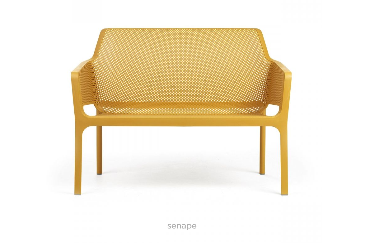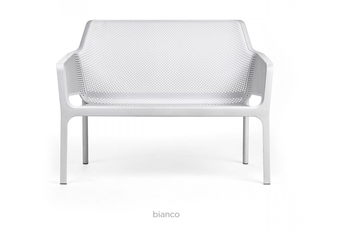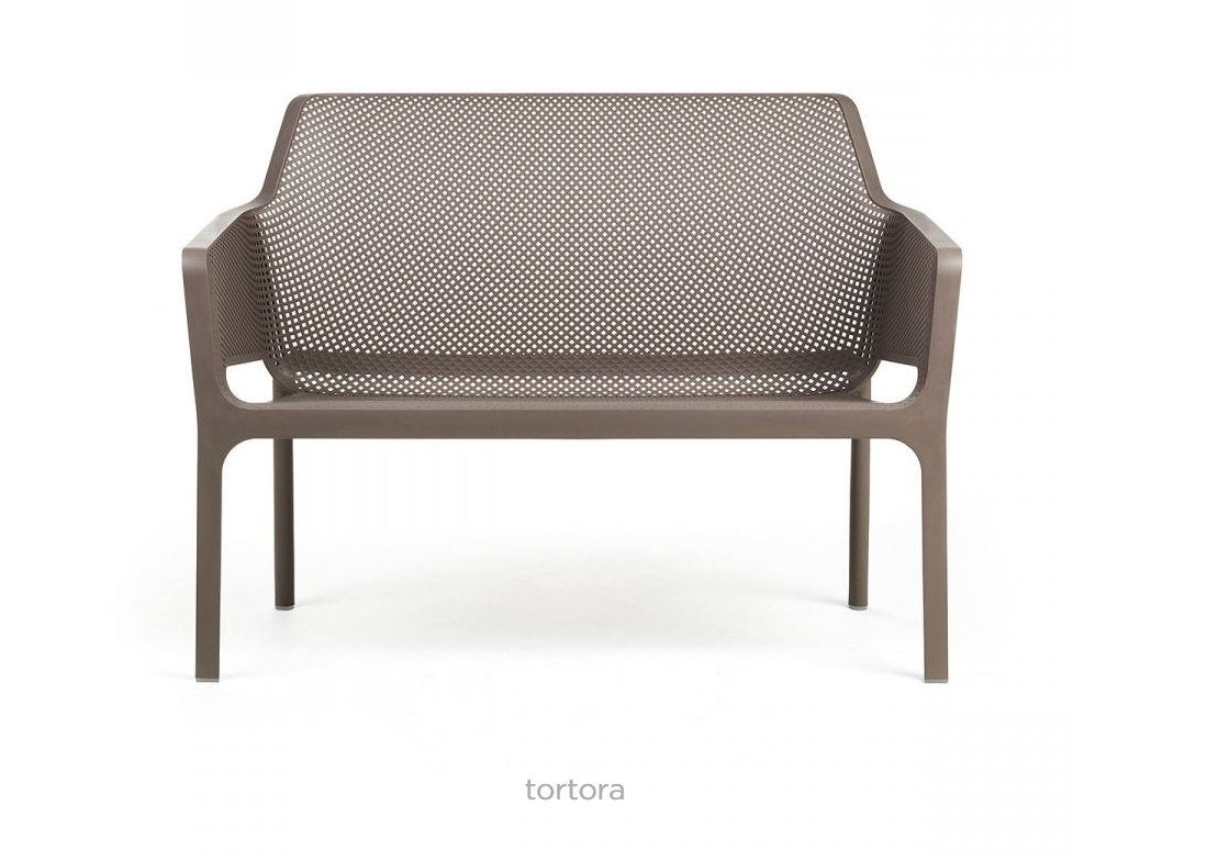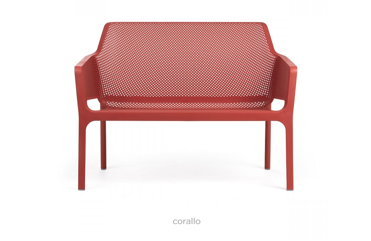 Romántico y empático, Net Bench es un banco de exterior de dos plazas fabricado en resina de fibra de vidrio. Caracterizado por un patrón de agujeros cuadrados y radiales, presenta líneas limpias, perfiles finos sin costuras y una amplia gama de cojines que lo complementan.