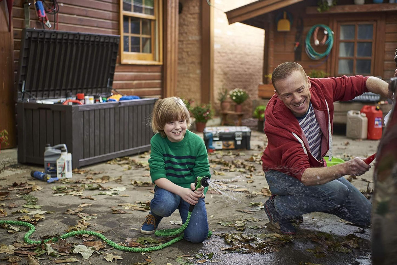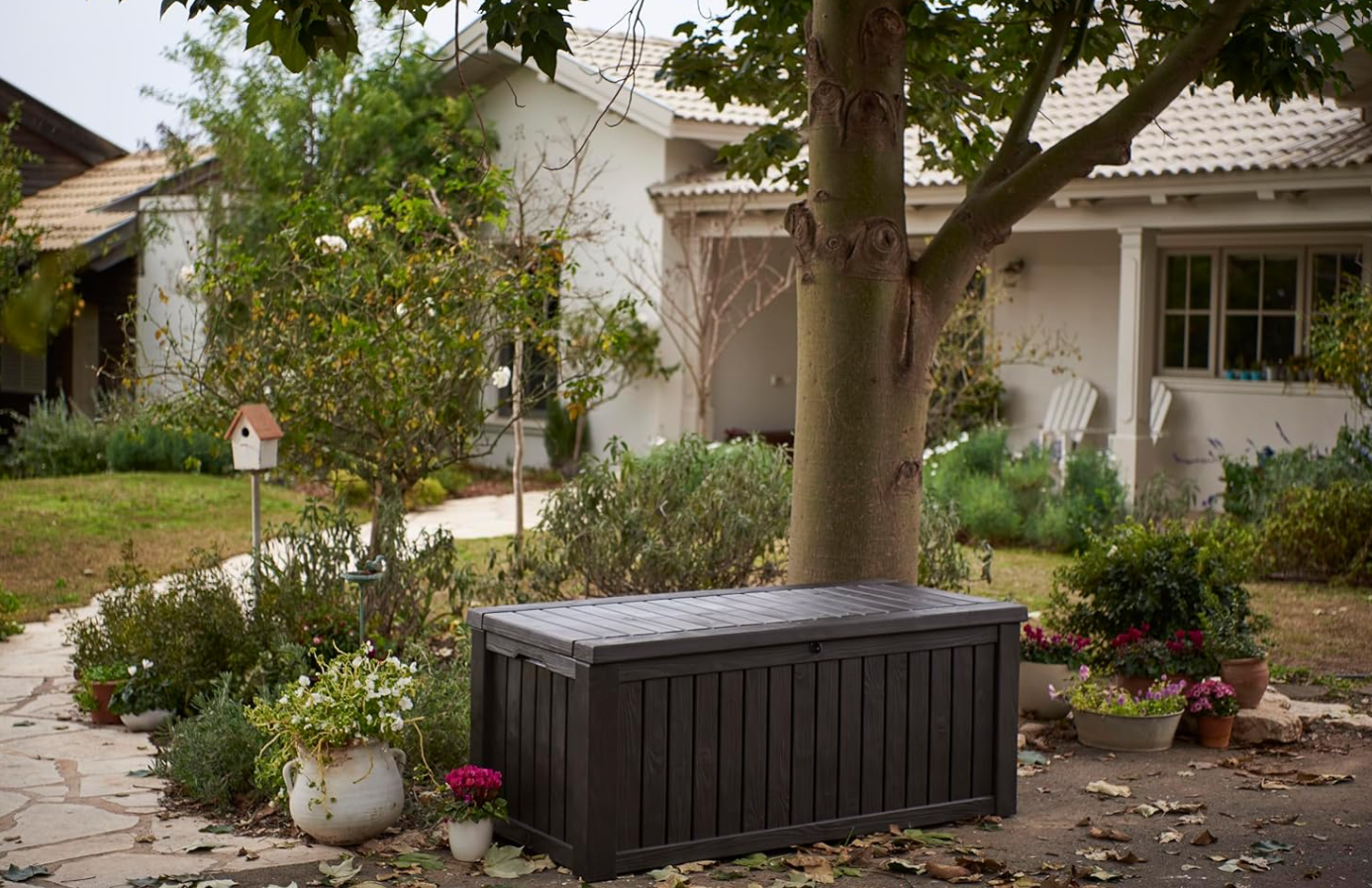 El cofre de herramientas Keter Rockwood Box es una solución práctica y duradera para organizar cualquier espacio al aire libre.