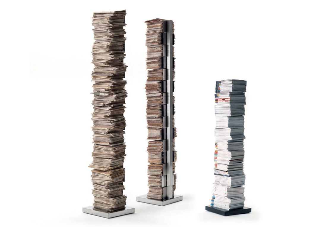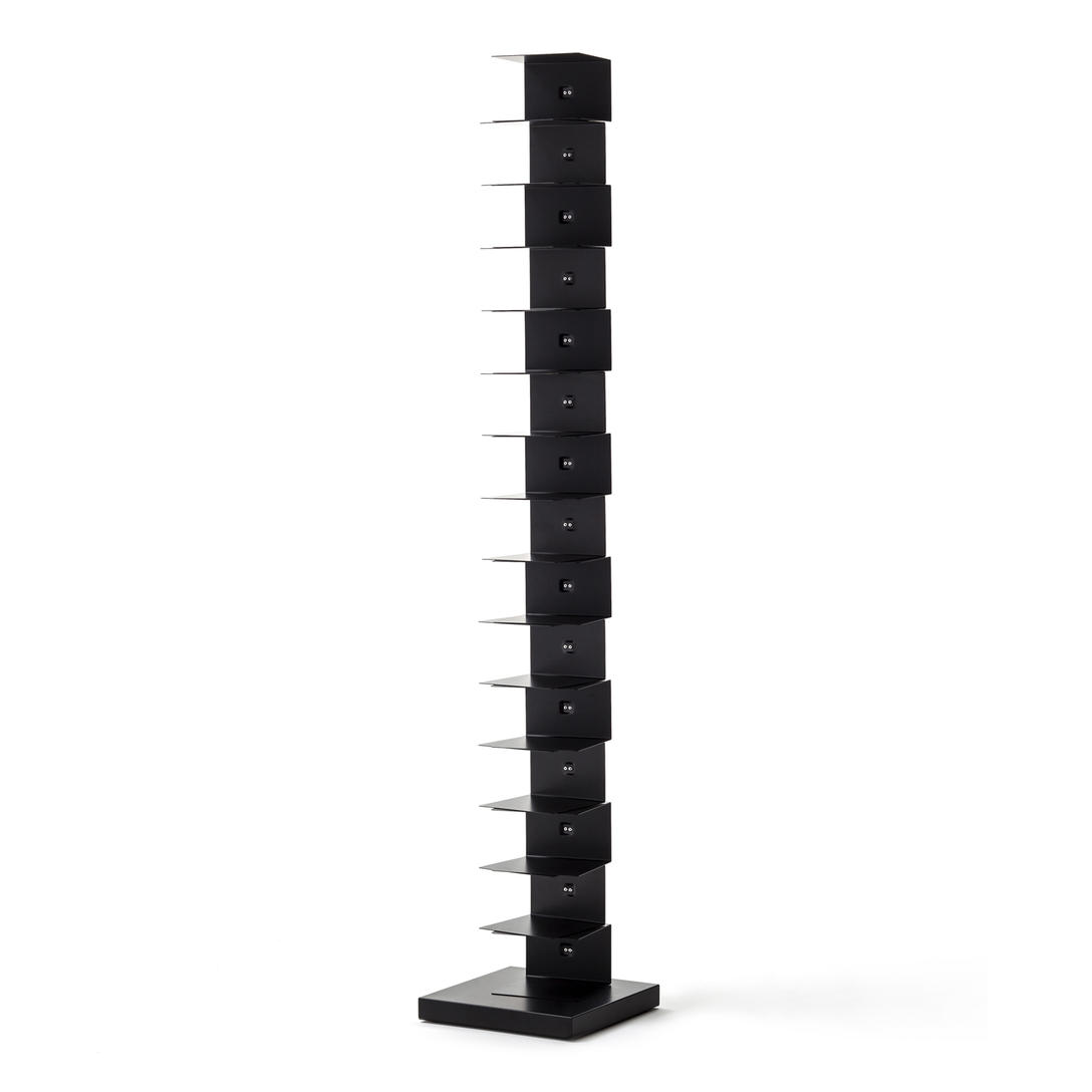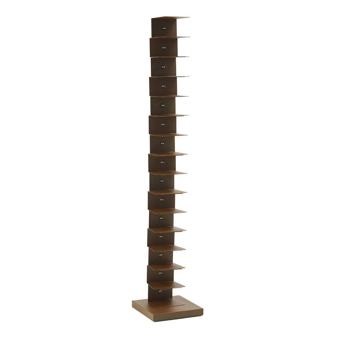 Acabado: Estructura y estantes en negro mate, negro mate, blanco Ral o metal con efecto corten mate; acero inoxidable pulido (estantes interiores en acabado satinado).