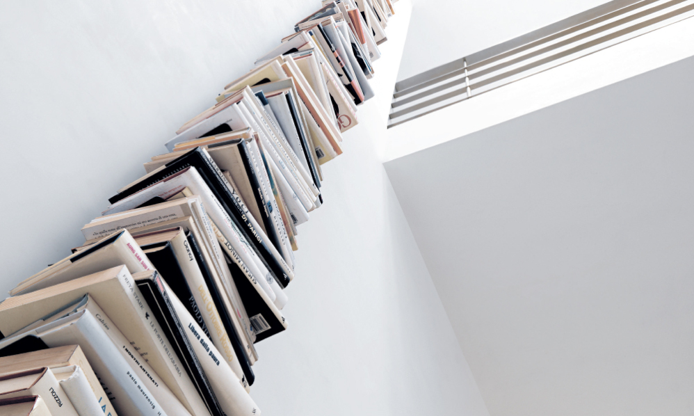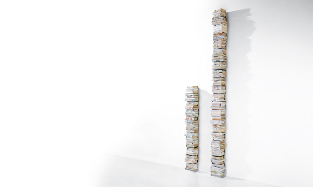Absolutamente esencial es la solución ideal para aquellos que tienen poco espacio y desean explotar la verticalidad del entorno . Ptolomeo Wall es perfecto para crear columnas de libros potencialmente infinito y puede desafiar cualquier ley de la gravedad. En apartamentos normales o lofts muy altos, no hay techo que no se pueda alcanzar modulando expertamente los tres tamaños en los que se fabrica Ptolomeo Wall .