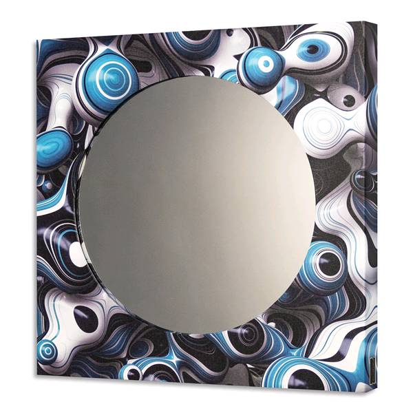 Espejo con estructura de madera, conformado y cubierto con lona impresa de alta definición.