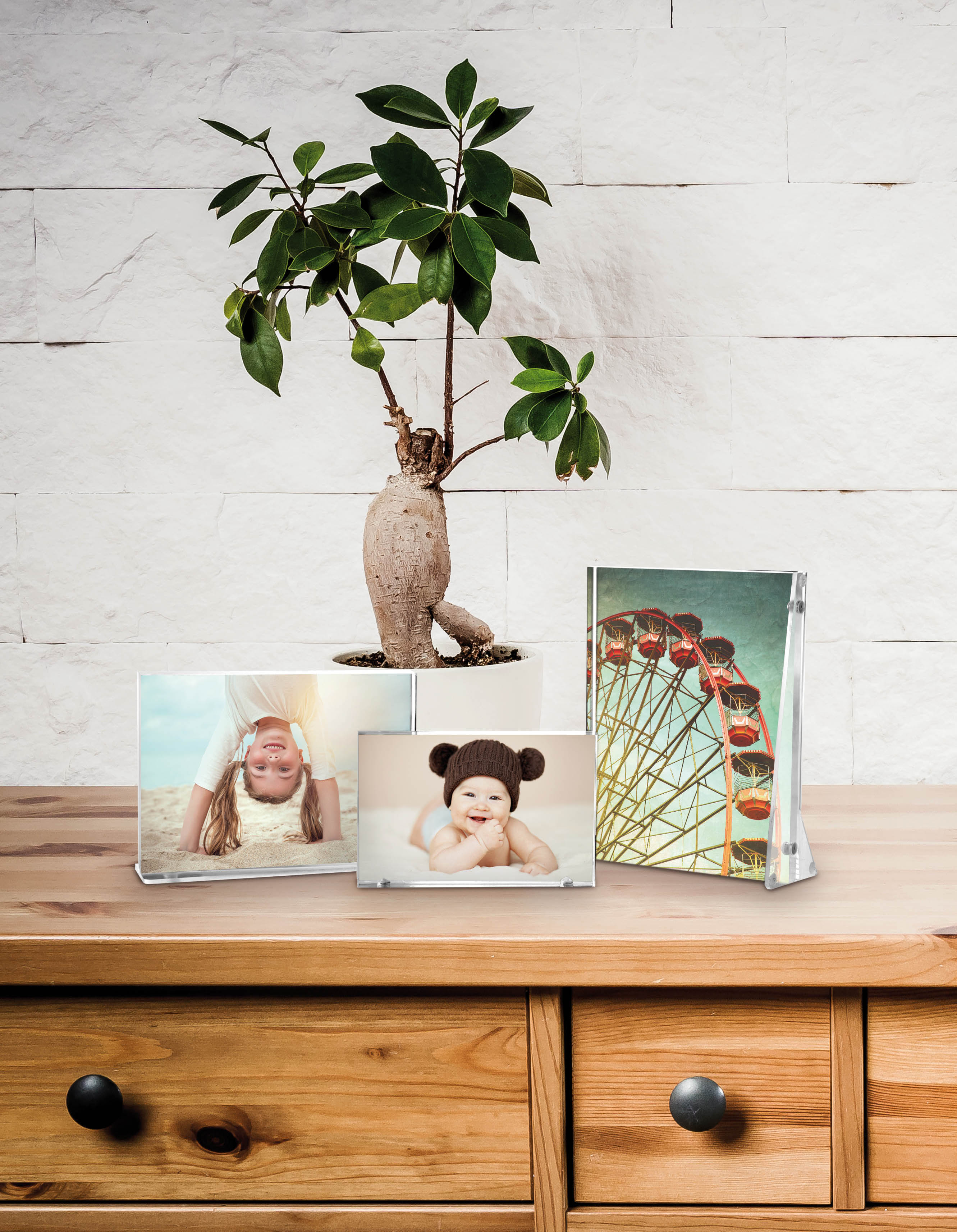 Marco de fotos en cristal acrílico transparente, soporte horizontal o vertical.