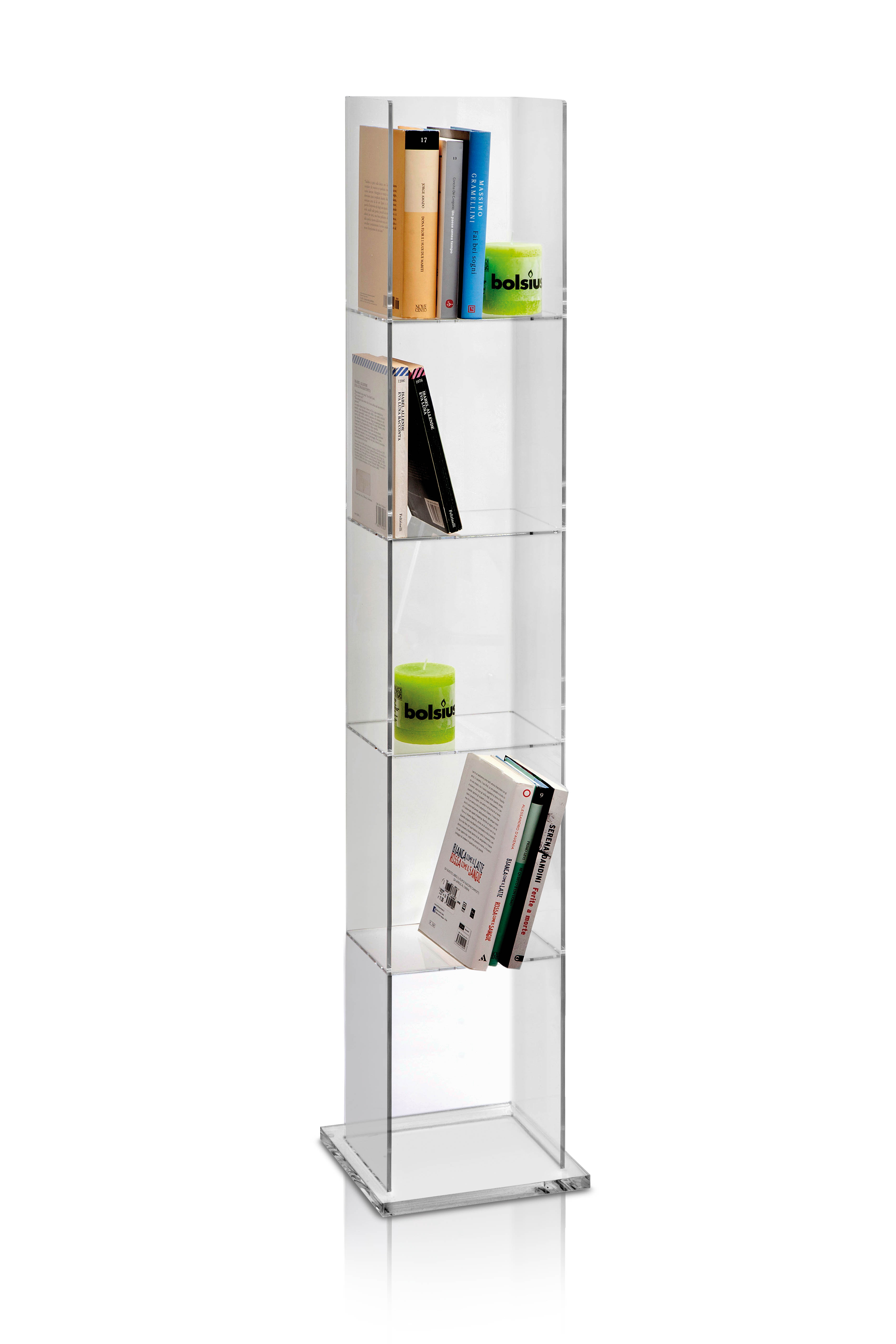 Dimensiones 24x22x124.5h cm. PMMA espesor base 15 mm, estante 4 mm, estructura 5 mm.