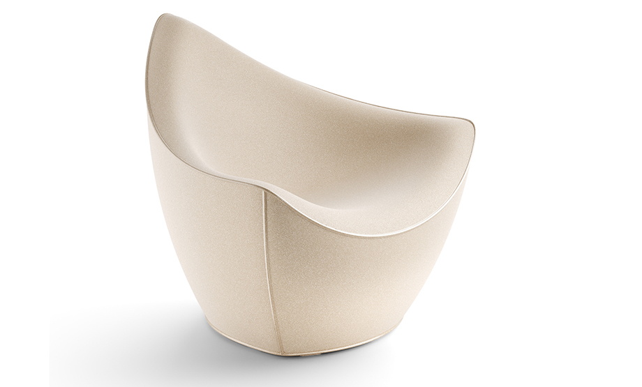 El efecto tridimensional aporta profundidad, haciendo que el sillón sea más definido y elegante, mientras que la referencia sartorial evoca el cuidado típico de la artesanía italiana.