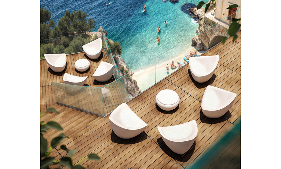 Dotado de detalles funcionales como el orificio de drenaje de agua, el sillón Vela revela su alma exterior garantizando durabilidad y resistencia a los agentes atmosféricos.