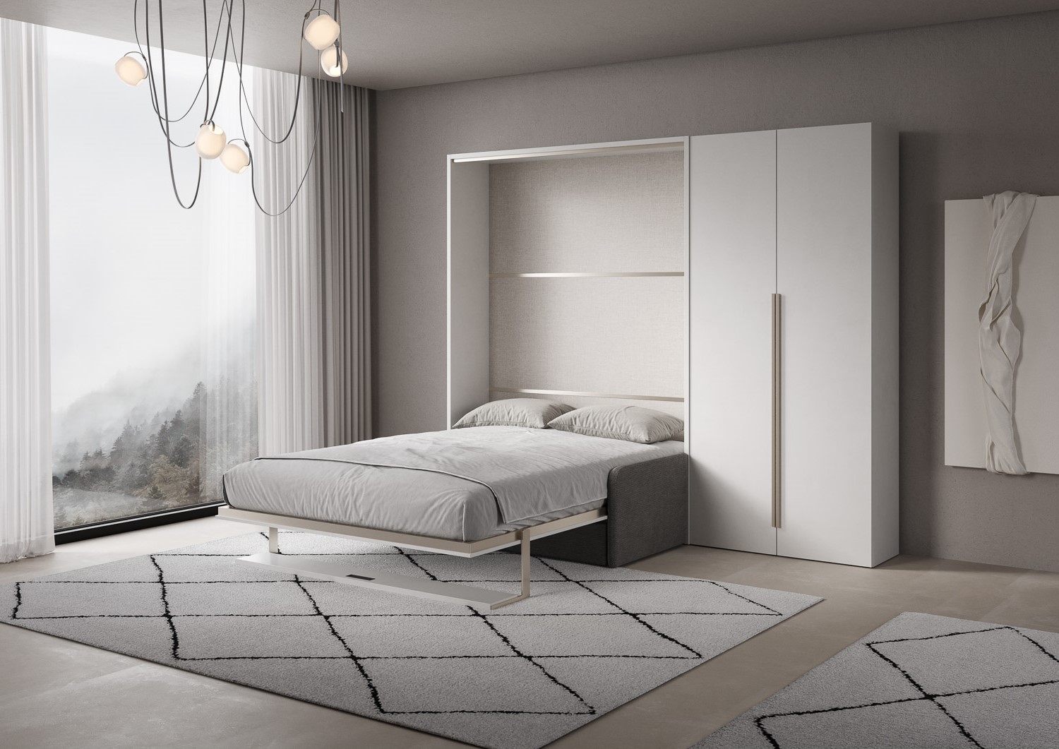 Cama doble abatible vertical de 160 cm Versia Sofà con sofá, estante y armario de 2 puertas a la derecha Clay