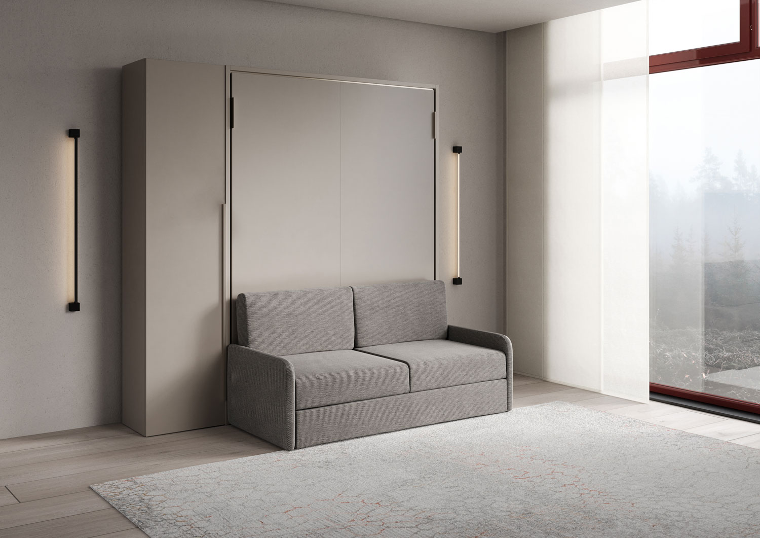 Cama doble abatible vertical de 160 cm Versia Sofà con sofá y armario de 1 puerta a la izquierda Clay