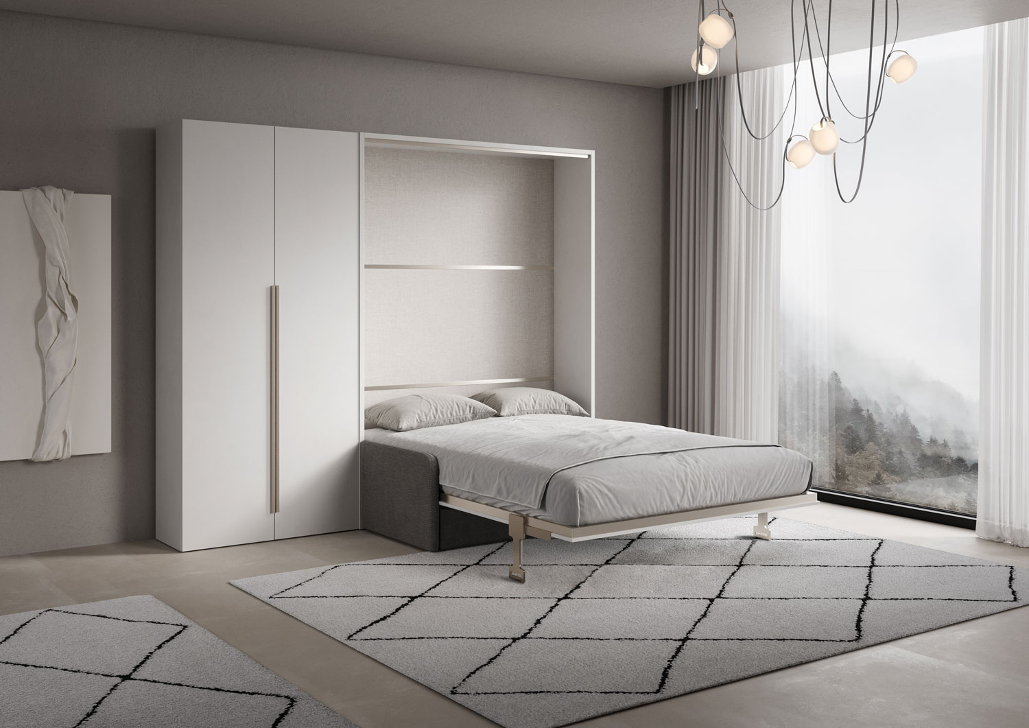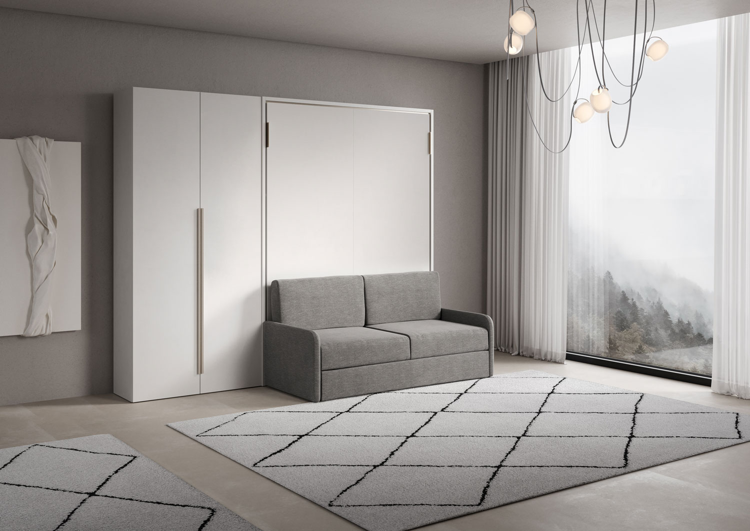 Cama doble abatible vertical de 160 cm Versia Sofà con sofá y armario de 2 puertas a la izquierda Clay
