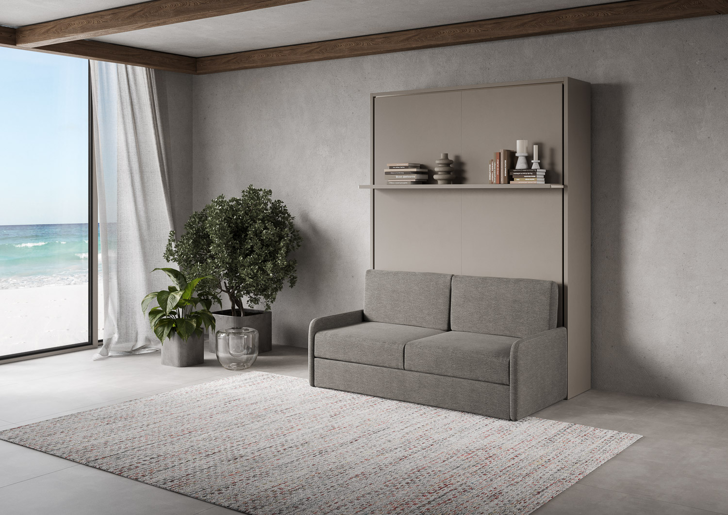 Cama doble francesa abatible de 140 cm con sofá vertical Versia Sofà y estante Argilla