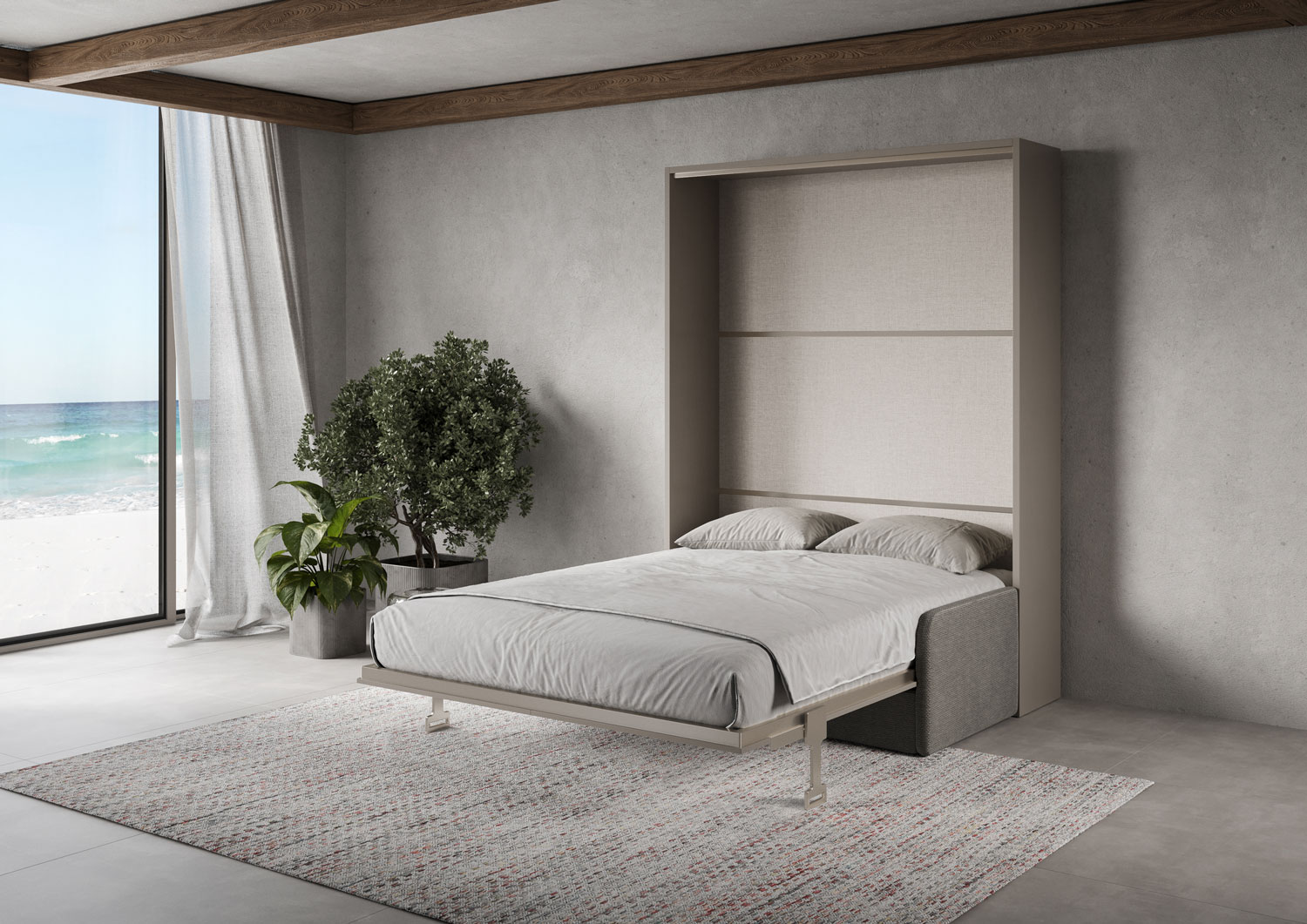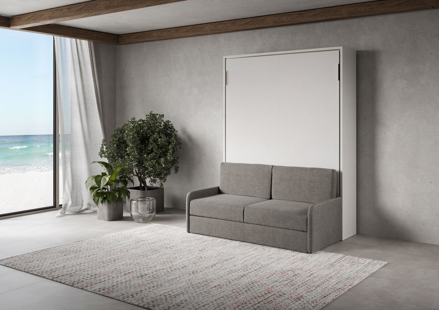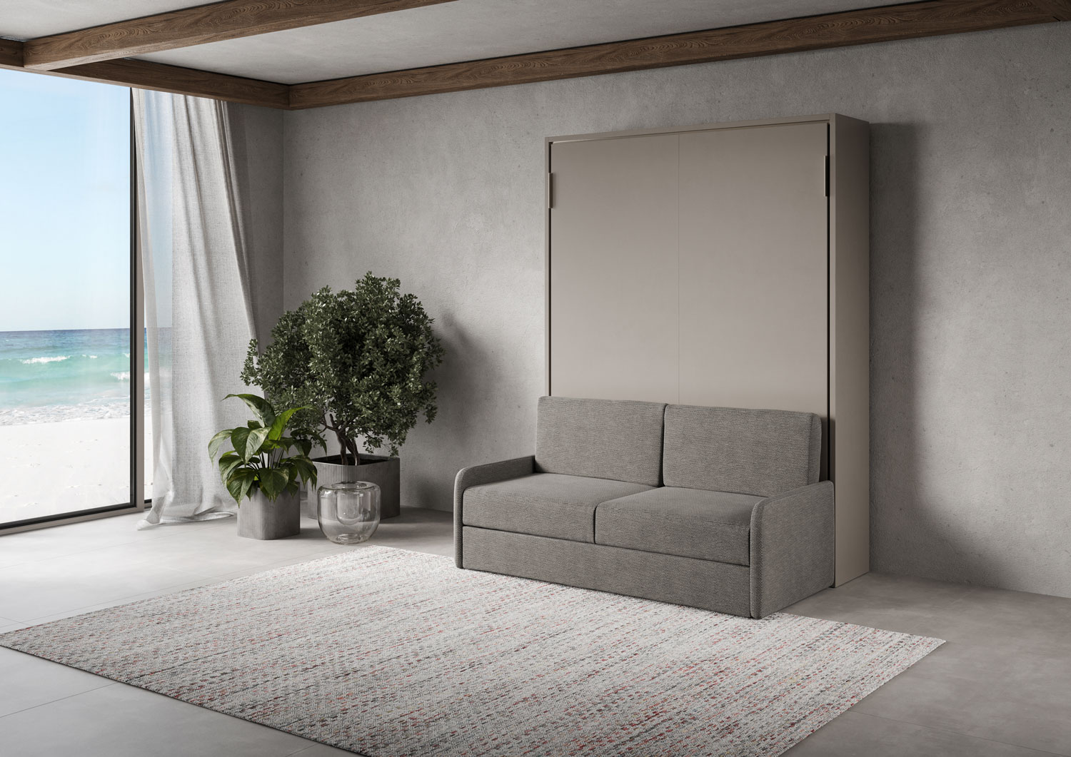 Cama doble francesa abatible de 140 cm con sofá vertical Versia y sofá Argilla
