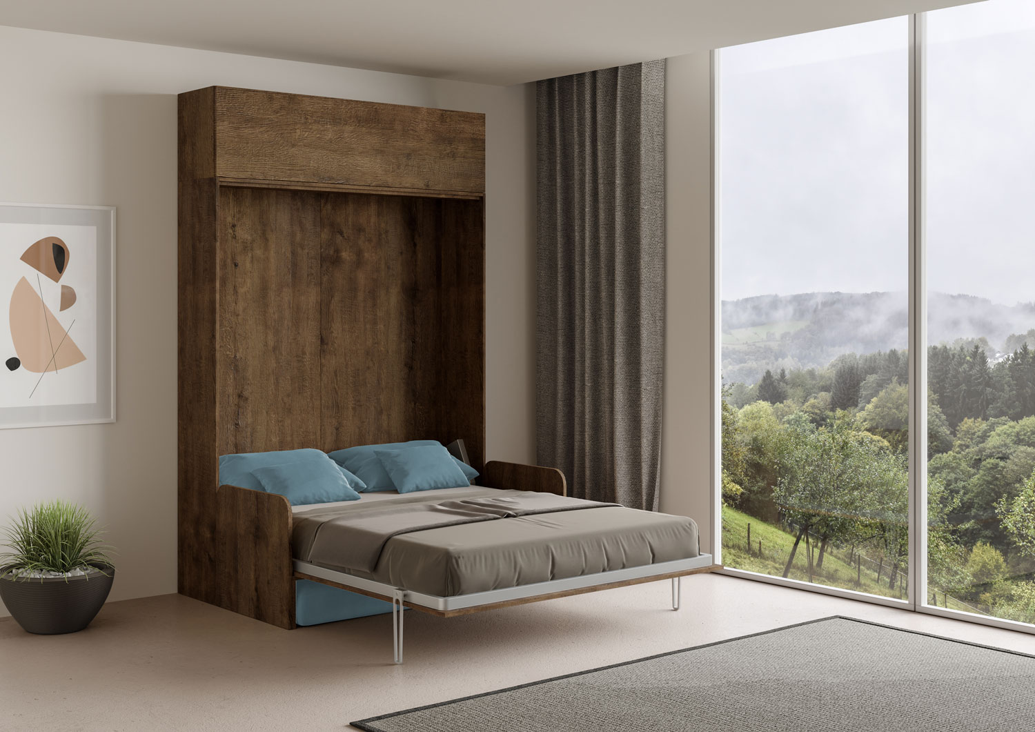 | Material | Composición cama Kentaro Sofá matrimonial con módulo superior a pared. Una composición de diseño completa perfecta para una zona de día que se transforma en una cómoda zona de noche con facilidad y velocidad. La composición incluye una cama abatible verti |