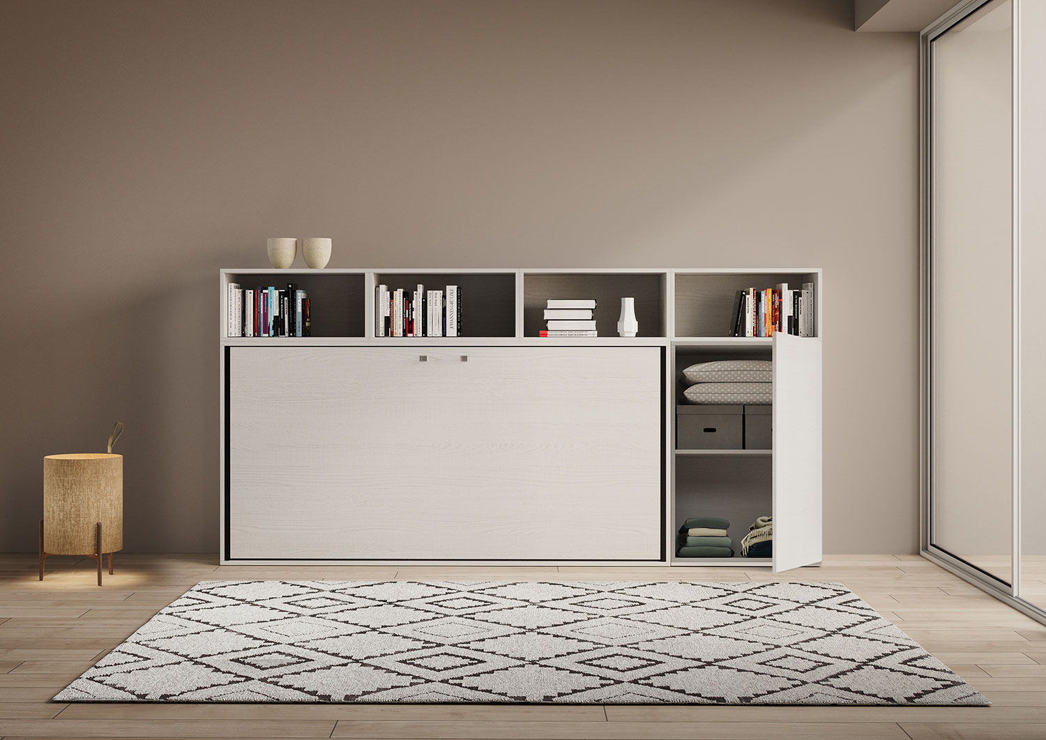 | Material | Cama individual abatible Kando A integrada con una composición de muebles (un espacio con puerta y estante interno y cuatro muebles con estante abierto). Es una solución original y funcional, que permite optimizar el espacio disponible, ocupando solo 39,2 |