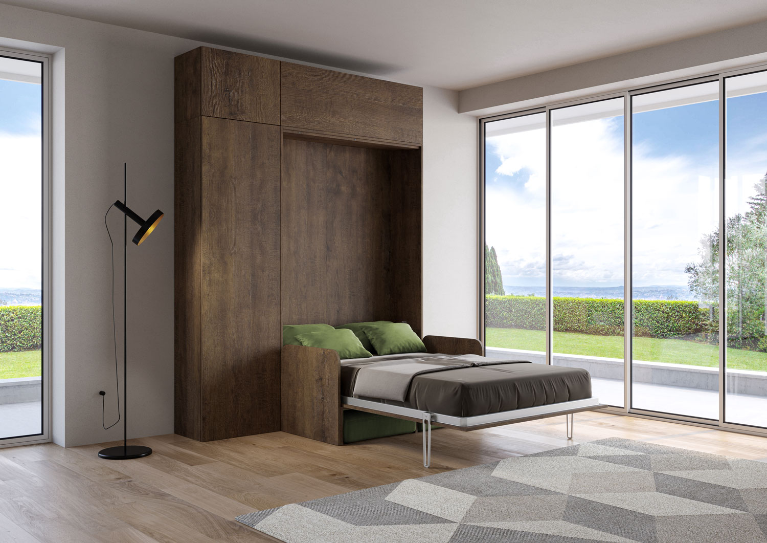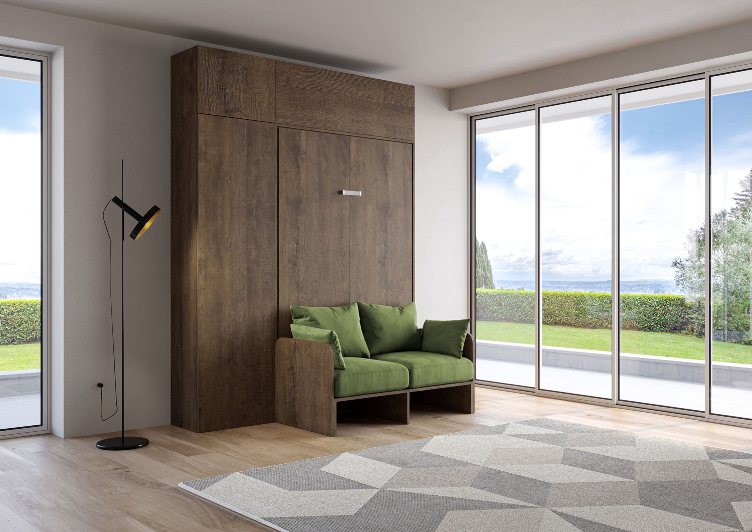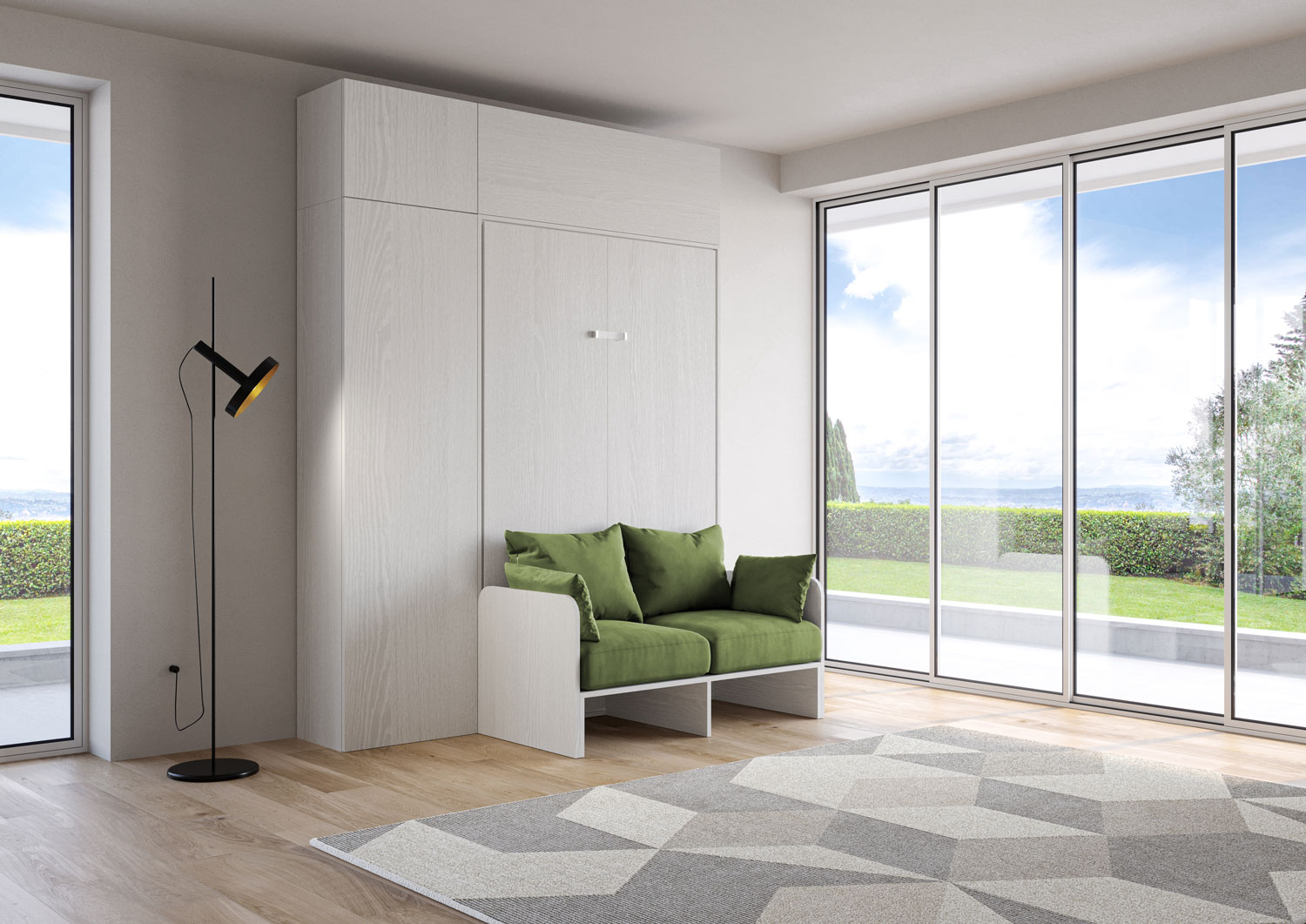 | Material | Cama abatible de un puesto y medio Kentaro Sofà vertical, disponible en la versión con sofá, columna y dos módulos a paredes superiores de la línea Isoka. Una composición original y multifuncional extremadamente versátil, que permite transformar en pocos |