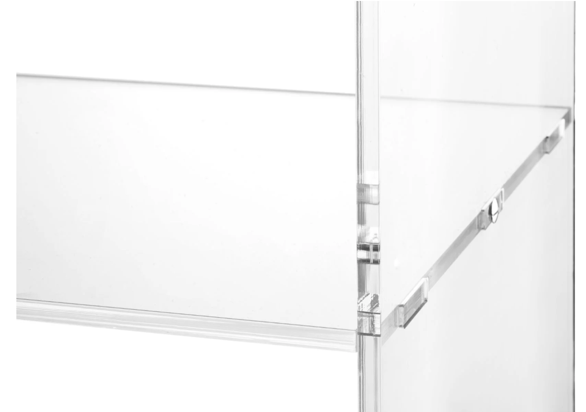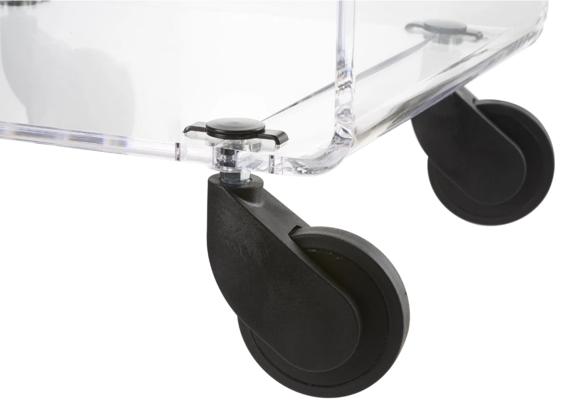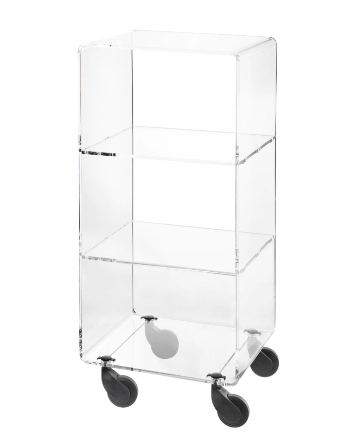 Carro multiusos sobre ruedas, en metacrilato transparente.
