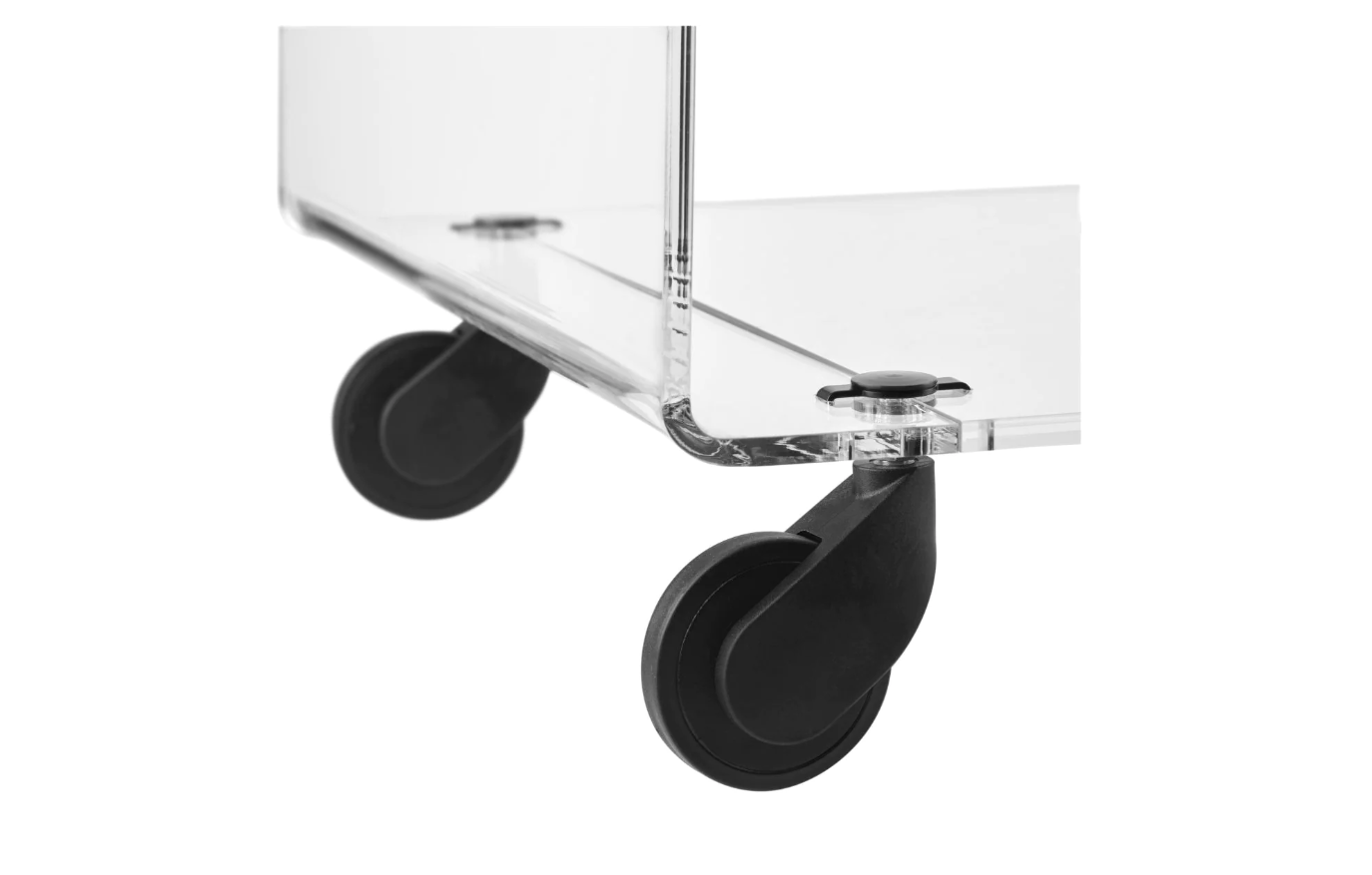 Carro multiusos sobre ruedas, en metacrilato transparente (8 mm de espesor).