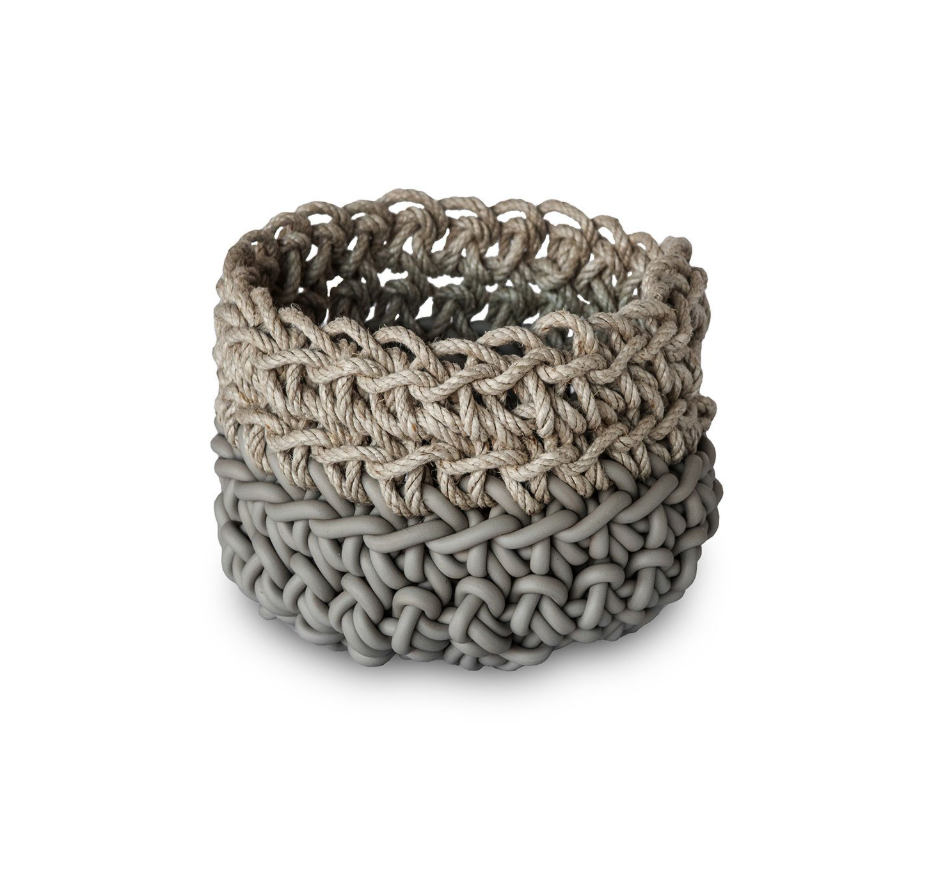Cesta de crochet en neopreno de 8 mm y cáñamo natural.