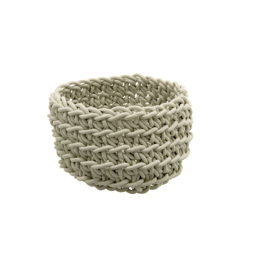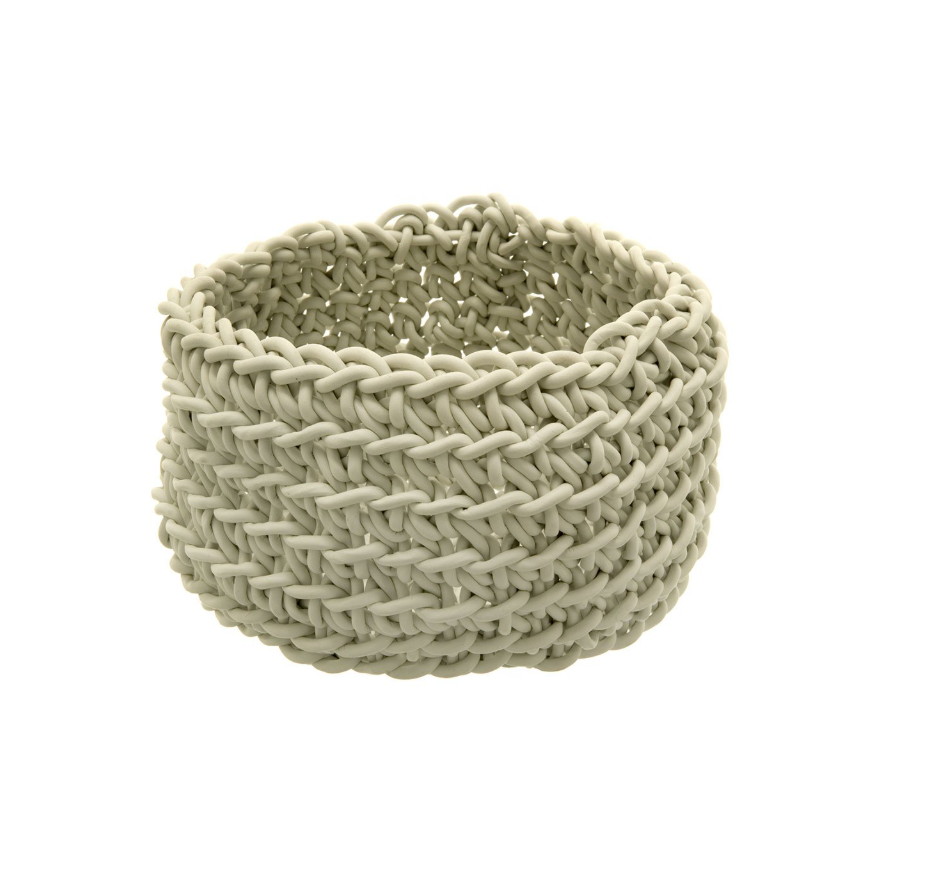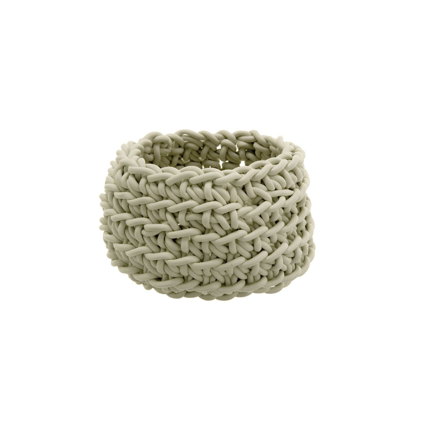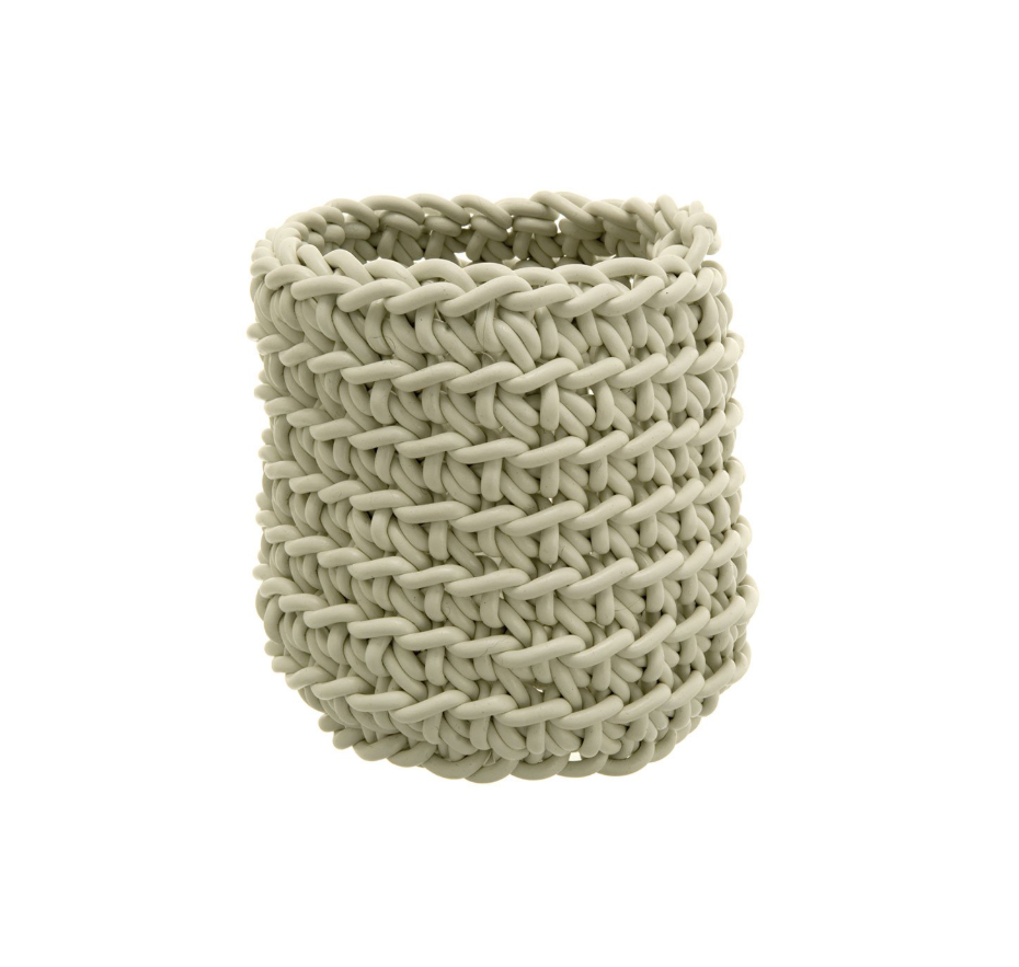 Cesta de crochet hecha a mano con hilo fino de neopreno.