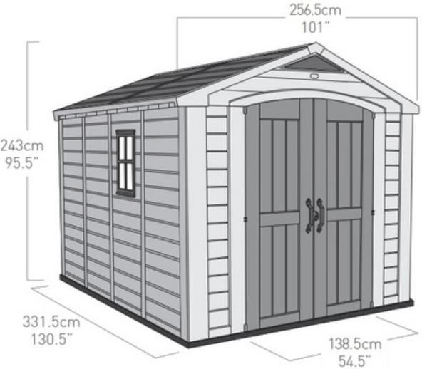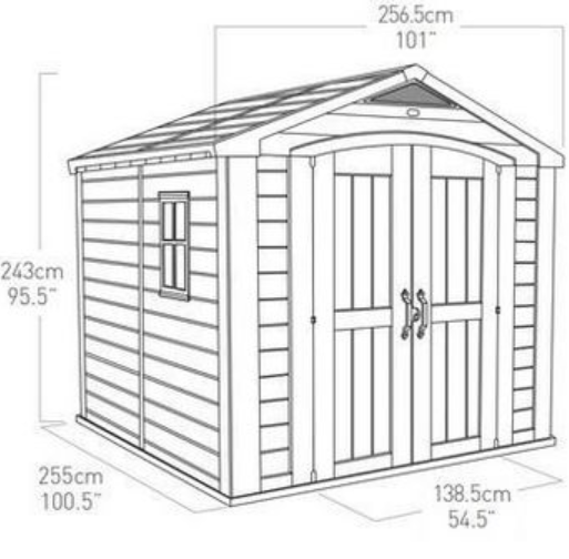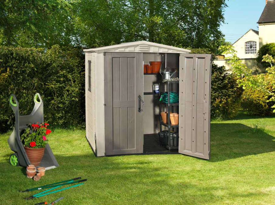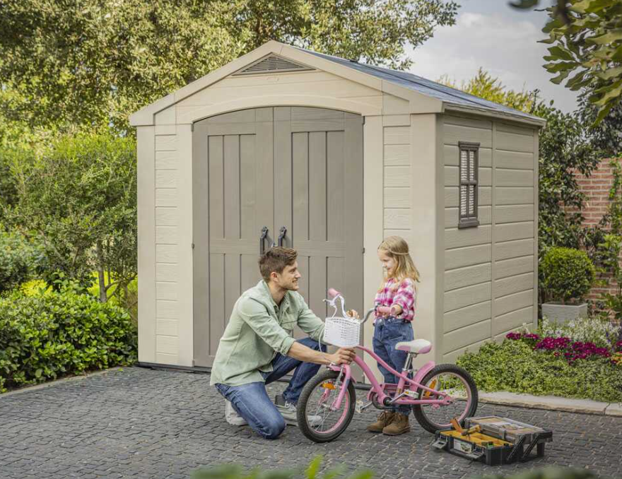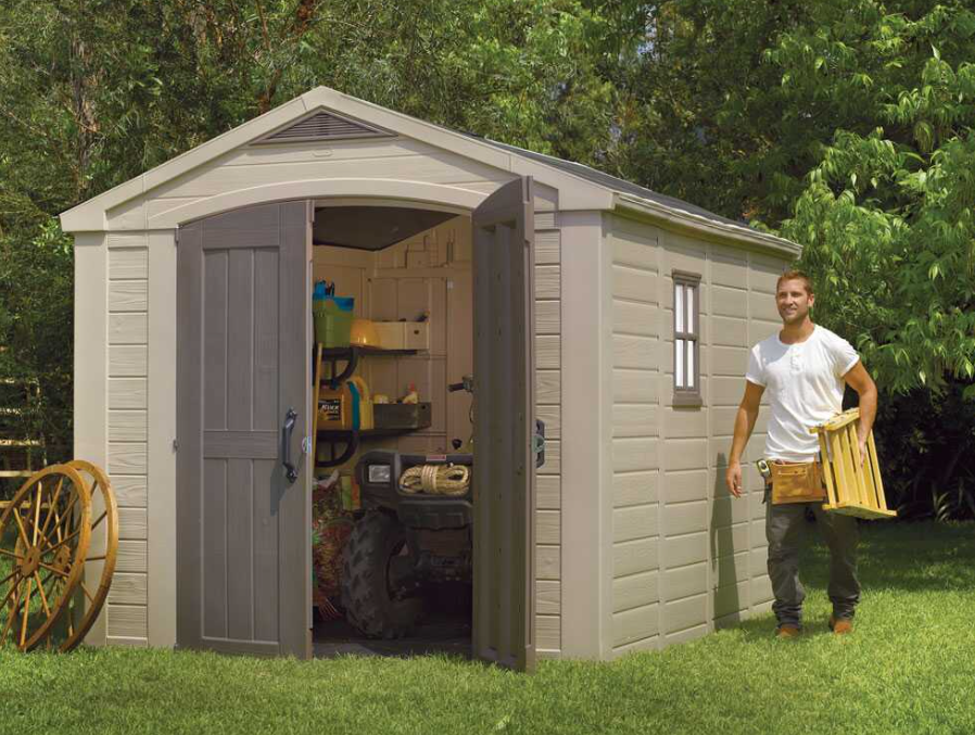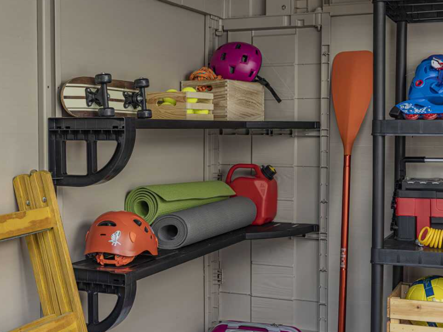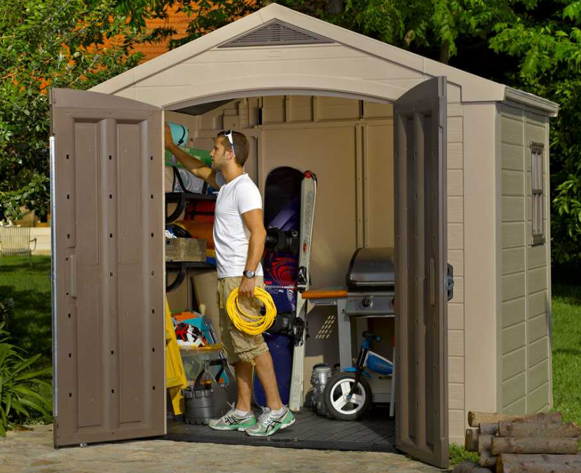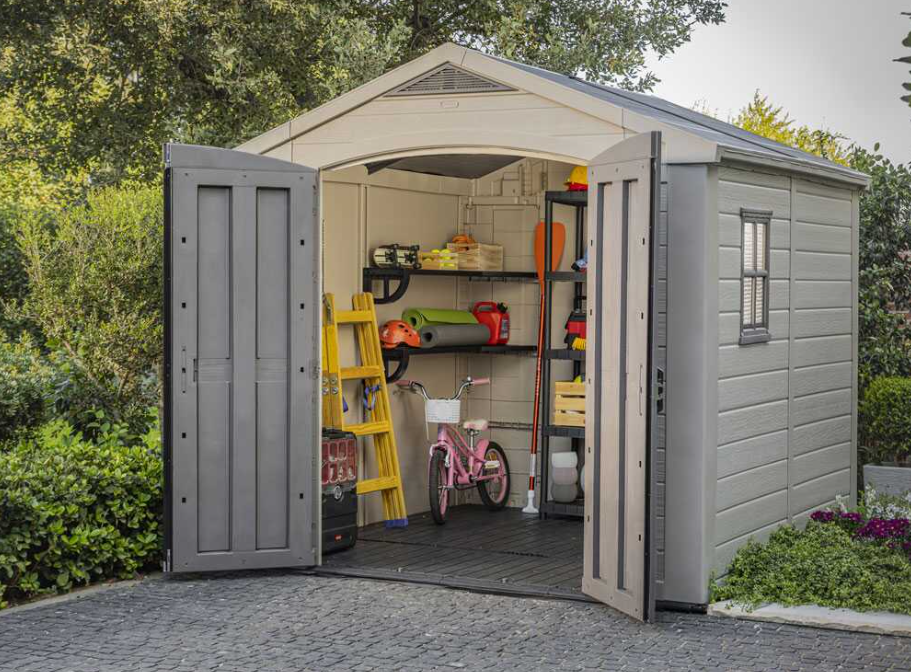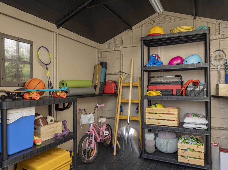 Gran espacio interior , ideal para herramientas, muebles de jardín, bicicletas, cortadoras de césped y mucho más.