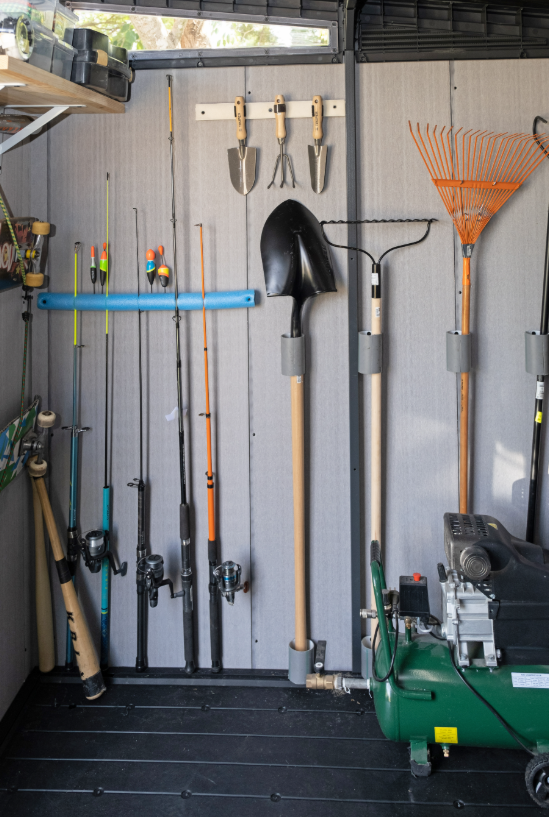 El piso elevado mantiene el contenido seco, mientras que los paneles perforados y pintables permiten la máxima personalización.