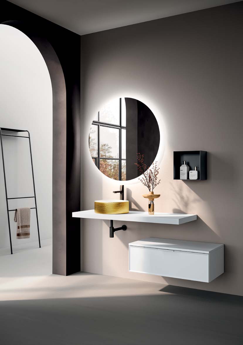 La composición Venere 102 de Oltrebagno representa la síntesis perfecta entre estética contemporánea y funcionalidad. Diseñada para amueblar el baño con elegancia, se compone de un mueble suspendido con acabados de alta calidad, combinado con un lavabo integrado de diseño minimalista y un espejo a juego.