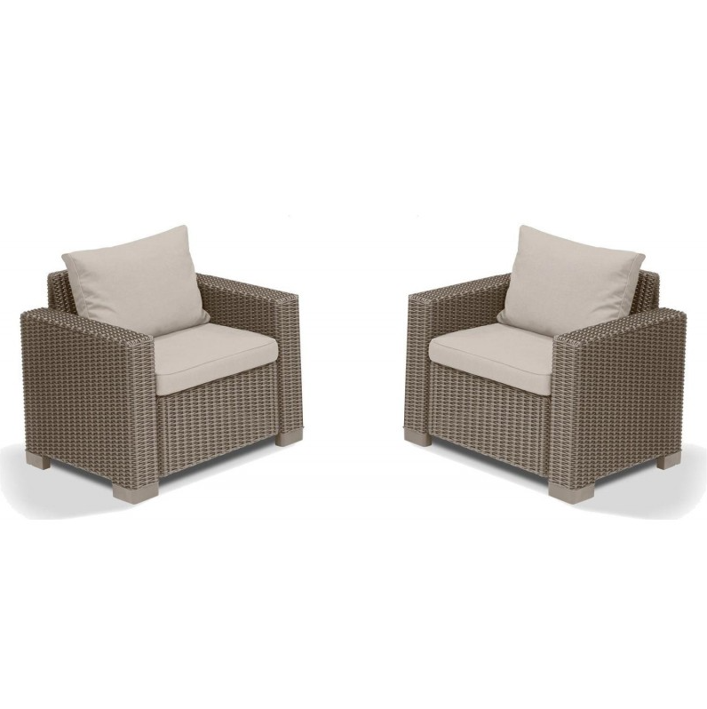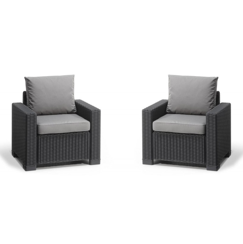 Actualice su espacio exterior con el conjunto de 2 sillones lounge Keter California, ideal para crear un rincón de relajación elegante y cómodo en su jardín, terraza o patio.