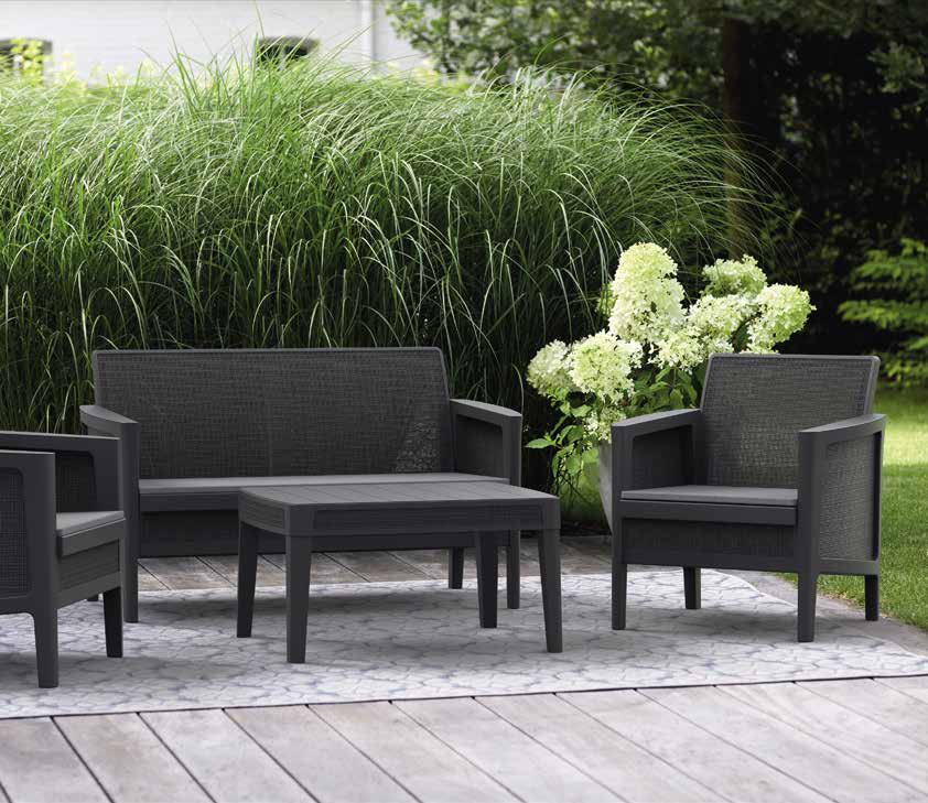 El conjunto de salón Atlas Forma es un elegante conjunto de muebles de jardín, ideal para amueblar tu espacio exterior con estilo. Este conjunto es perfecto para crear una acogedora zona de relax gracias a su sofá, sillones y una práctica mesa auxiliar. Disfruta de momentos de convivencia al aire libre, aprovechando la espaciosa mesa auxiliar para guardar todo lo que necesites. El conjunto de salón Atlas Forma destaca por su fácil montaje y por estar fabricado en resina resistente a la intemperie, lo que garantiza una larga duración. Su textura efecto yute y su diseño bicolor añaden un toque de elegancia a tu jardín. El conjunto consta de un sofá (125 x 74,3 x 67,6 cm), dos sillones (67,6 x 74,3 x 67,6 cm) y una mesa rectangular (74,4 x 40 x 56,4 cm) con estructura y tablero de polipropileno color antracita. Los cojines extraíbles, incluidos en el conjunto, son de polipropileno gris/plateado. El conjunto ofrece capacidad para 4 personas y presenta un estilo de diseño internacional.