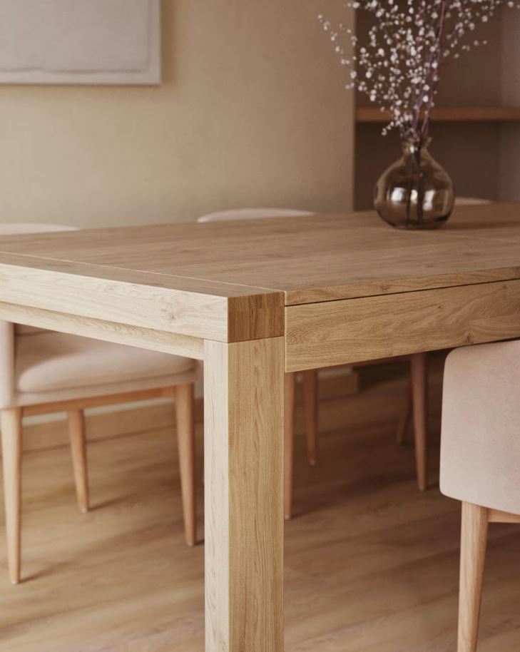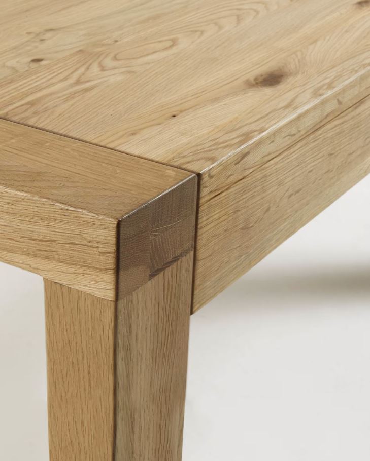• Tapa en chapa de roble que hace que cada mesa sea única, con las vetas y matices de la madera.