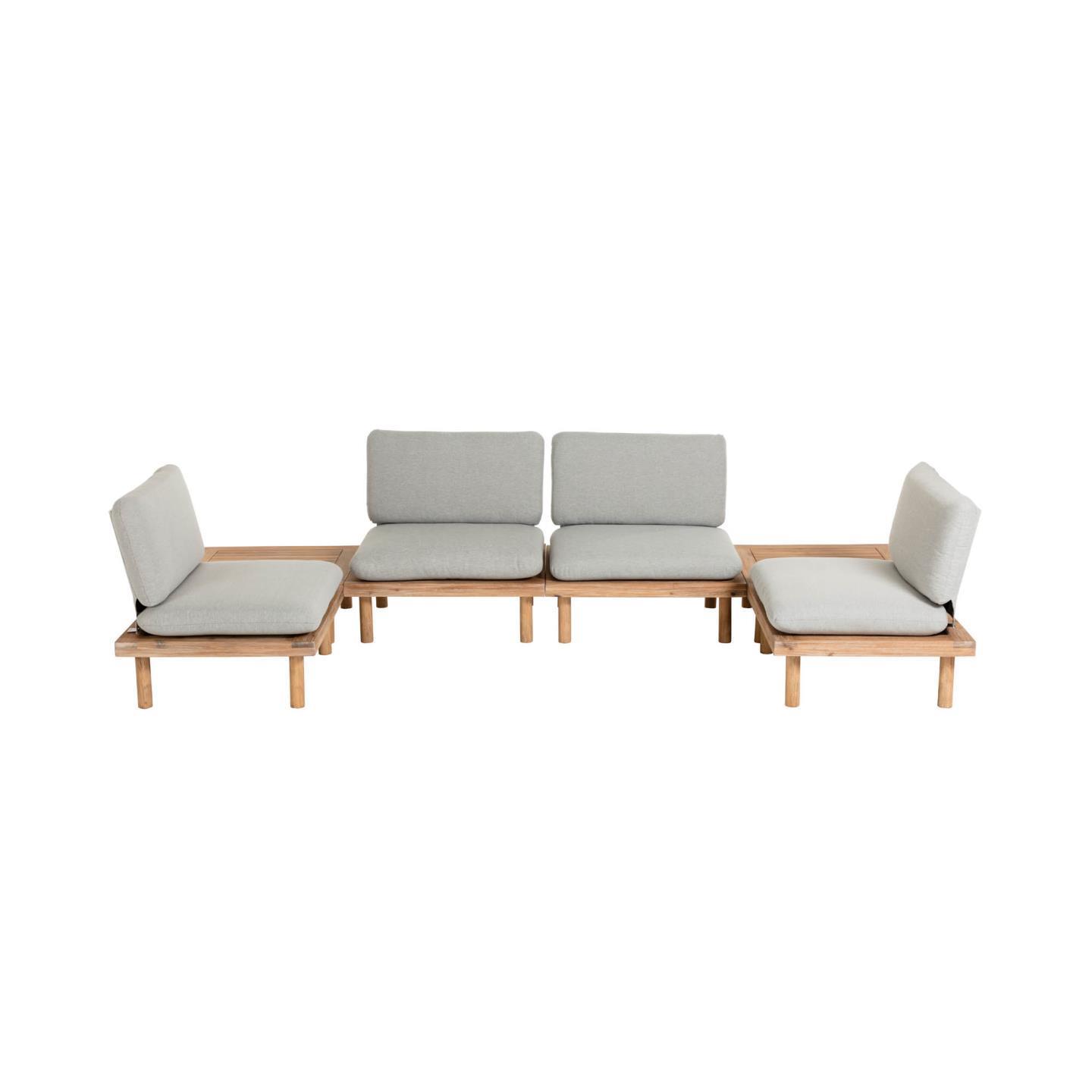 | Material | 52% Madera de acacia (Acacia auriculiformis), 30% Acero, 7% Tejido, 7% Espuma (poliuretano), 4% Fibras acrílicas |