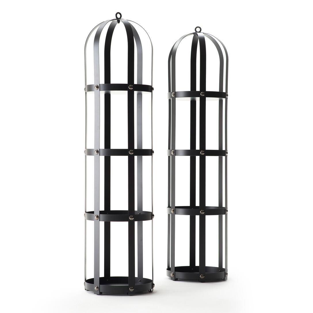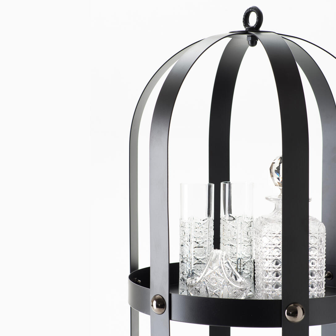 Contenedor, porta objetos escultórico en metal y aluminio, equipado con cuatro bandejas. enriquecido