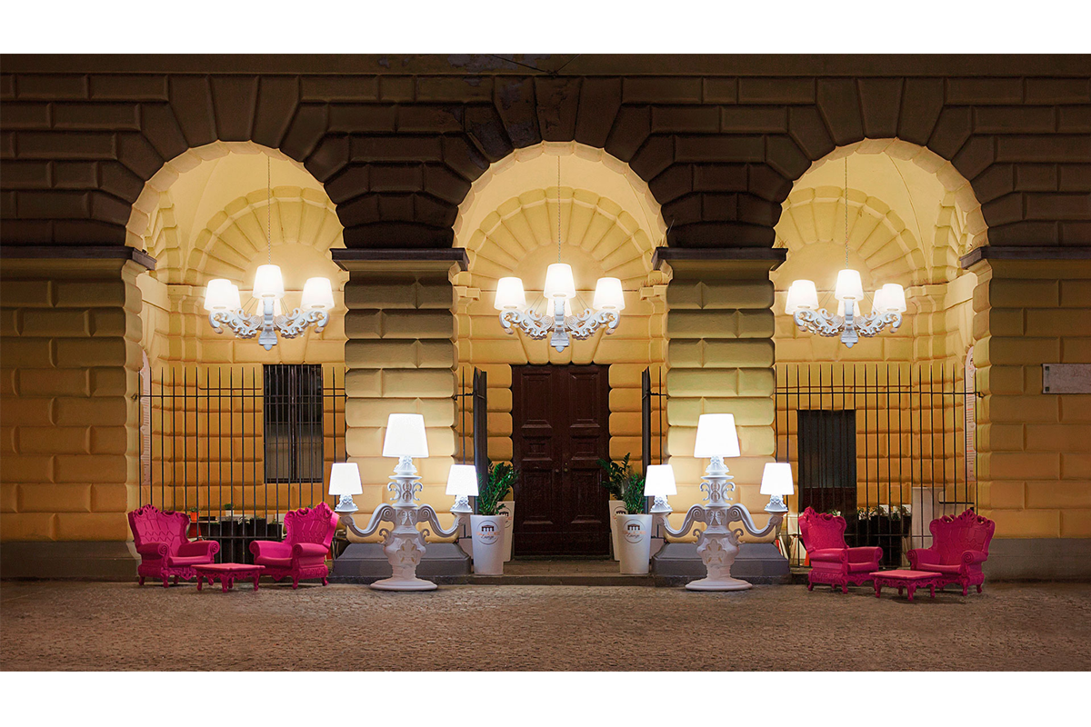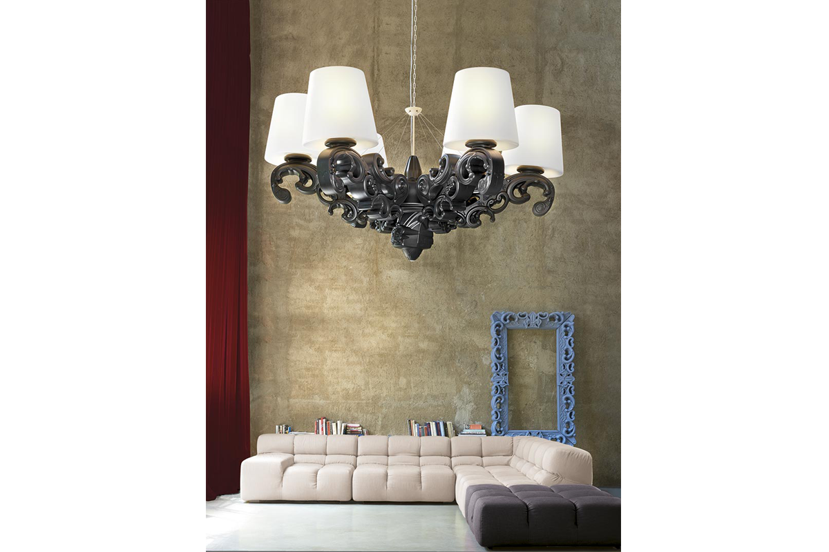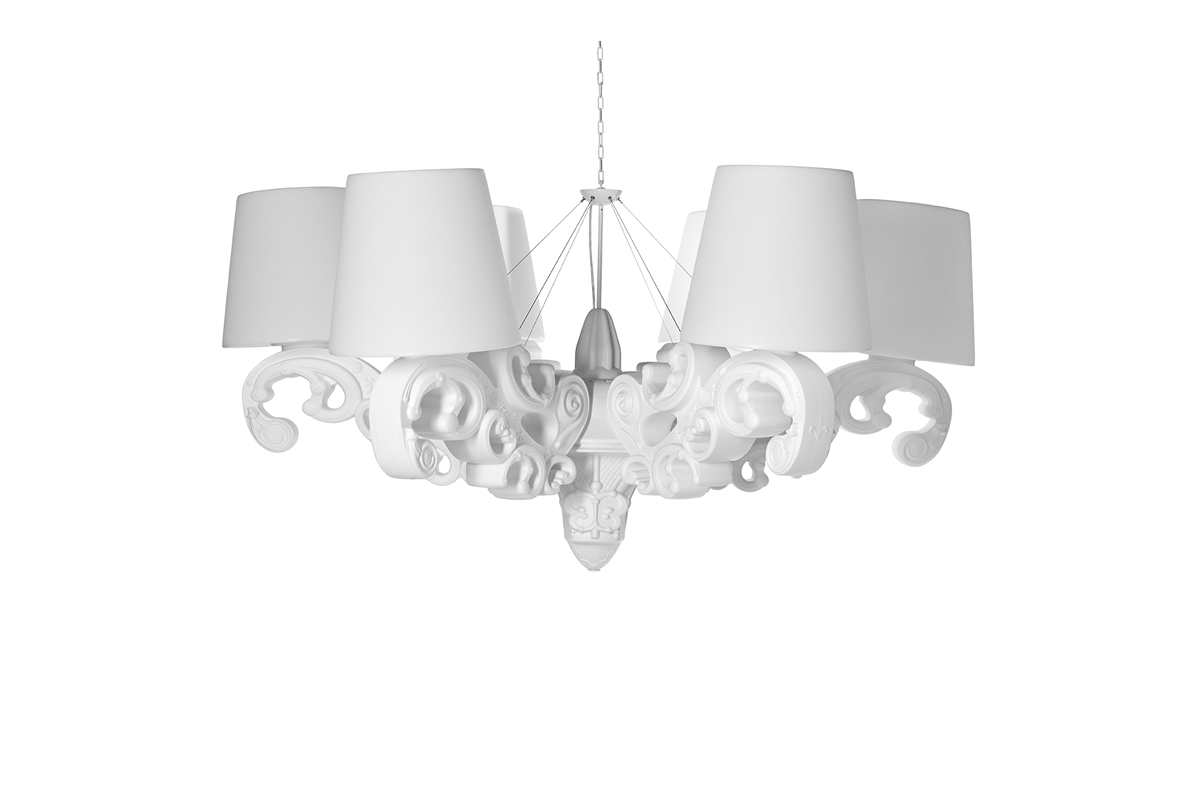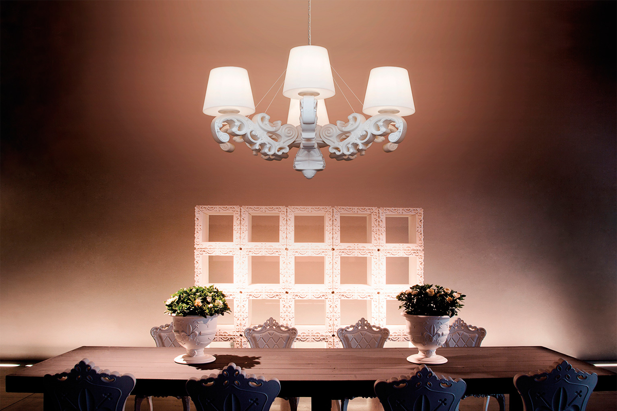 La lámpara colgante Crown of Love está diseñada por Graziano Moro y Renato Pigatti . The Crown of Love es una reinterpretación del clásico candelabro barroco, con un estilo simplificado y más cercano al diseño puro.