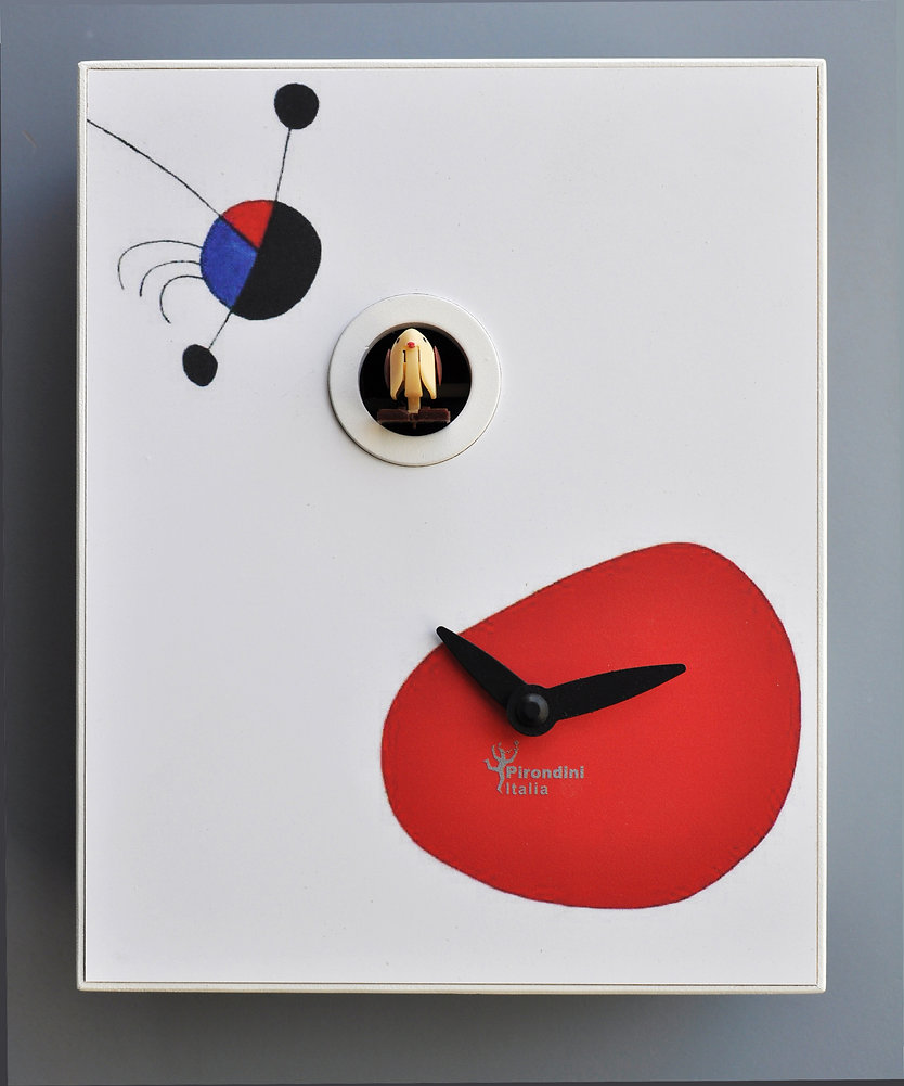 El reloj de cuco D'Après Mirò presenta un diseño artístico inspirado en la obra de Joan Miró. Compacto y fabricado en Italia, cuenta con un mecanismo de cuarzo y función de luz nocturna, lo que lo convierte en la pieza ideal para decorar con estilo tu salón, estudio o dormitorio, añadiendo un toque de color y creatividad.