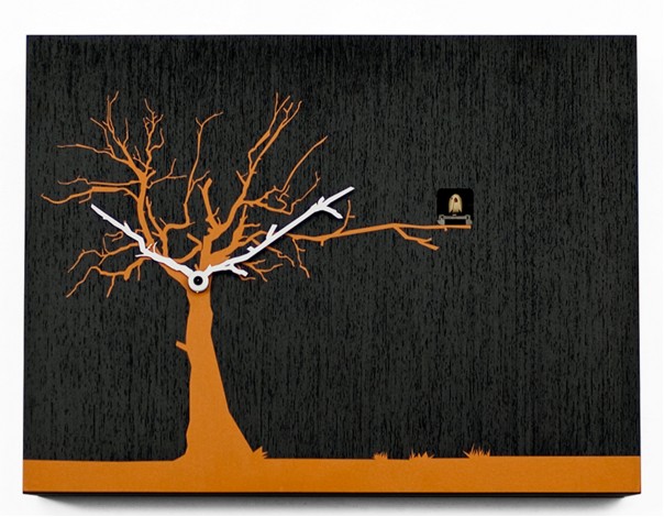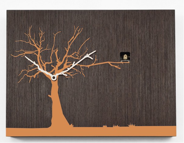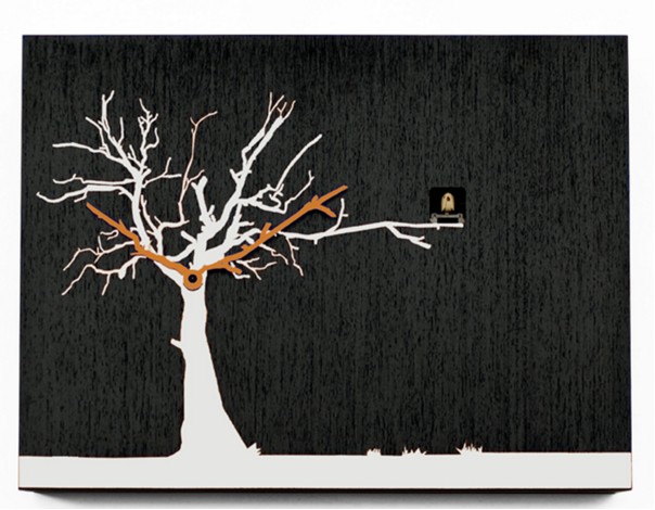 Simple, delicado, lineal pero de gran impacto, una imagen con pocos elementos pero que se destaca. Este es CùCùRùKù, un objeto de diseño, uno de los más vendidos de Progetti, diseñado por Riccardo Paolino y Matteo Fusi, apreciado por su elegancia sin excesos. CùCùRùKù es un homenaje a la naturaleza, en particular al período de otoño e invierno, cuando los árboles pierden sus hojas, la madera se convierte en la protagonista y los primeros colores cálidos y luego fríos de la nieve. El cuco descansa sobre la rama más larga, al abrigo del clima. Las manos, con la forma imprecisa de las ramas, pueden ser de color naranja, blanco o verde. Movimiento de batería de cuarzo. Un sensor sensible a la luz detiene automáticamente el timbre en ausencia de luz.