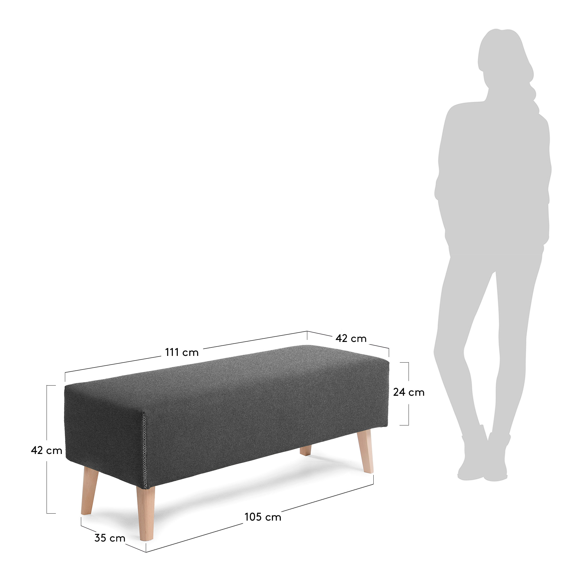 Banco tapizado en tela Varese con tratamiento de teflón antimanchas. Retirable. Patas en madera de haya natural.