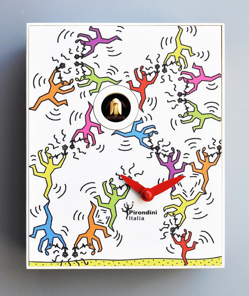 El reloj de cuco D'Après Haring, con su diseño compacto y original, mide 16,5 x 20 x 10 cm (ancho x alto x profundidad), ideal para decorar salones, cocinas o dormitorios con un toque artístico y moderno. Fabricado con materiales de alta calidad y con un preciso mecanismo de cuarzo, combina estilo, funcionalidad y un encanto creativo. Perfecto como elemento decorativo para interiores modernos y contemporáneos.