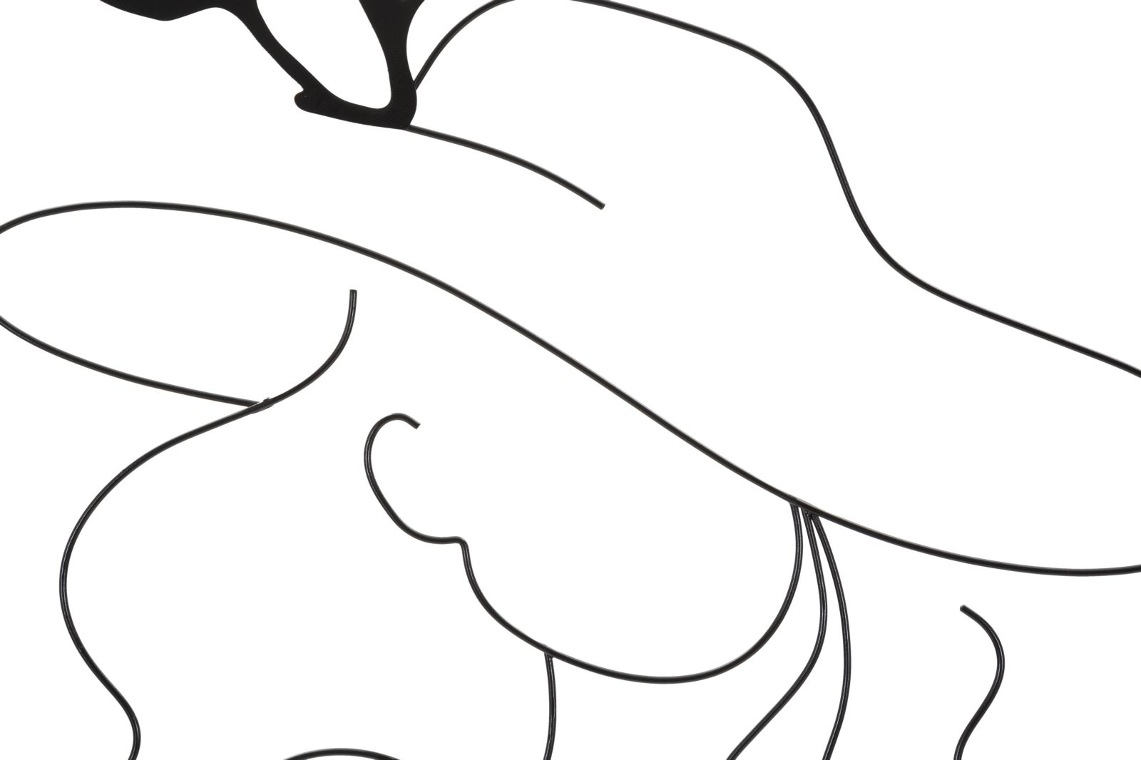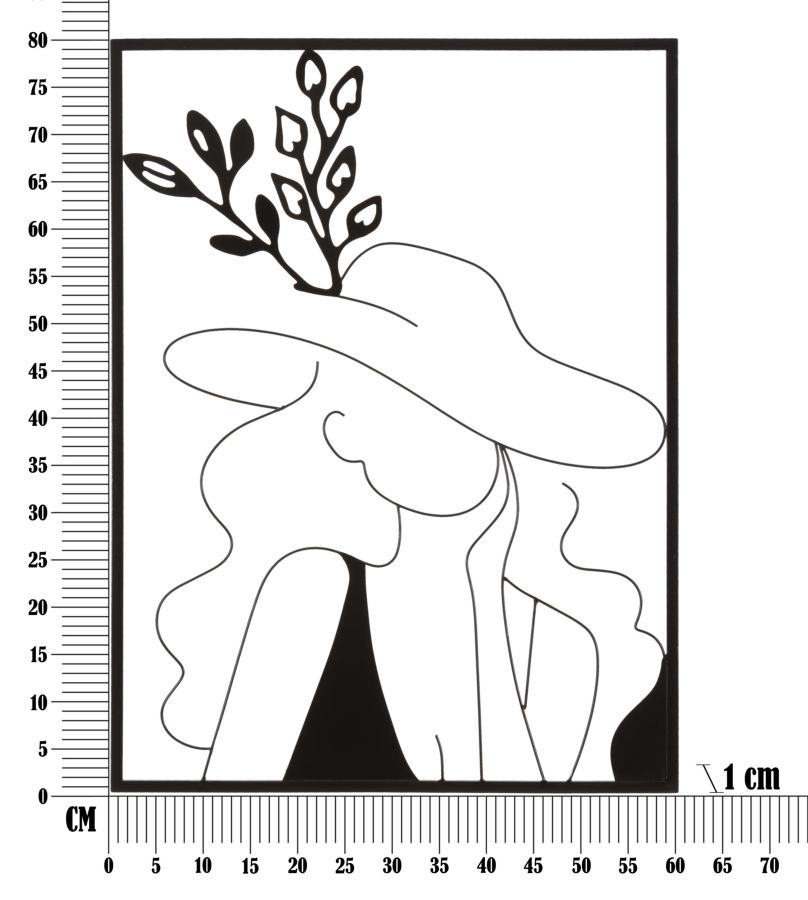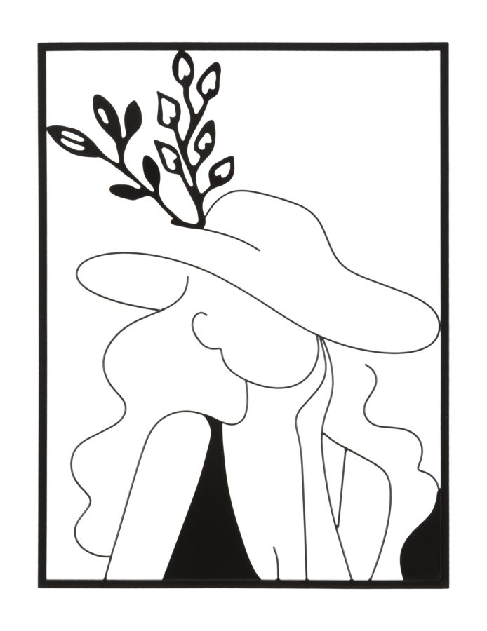 Panel decorativo de pared 3D con elementos sencillos y esenciales que componen una figura femenina con un elegante sombrero, todo ello encerrado en un marco rectangular.