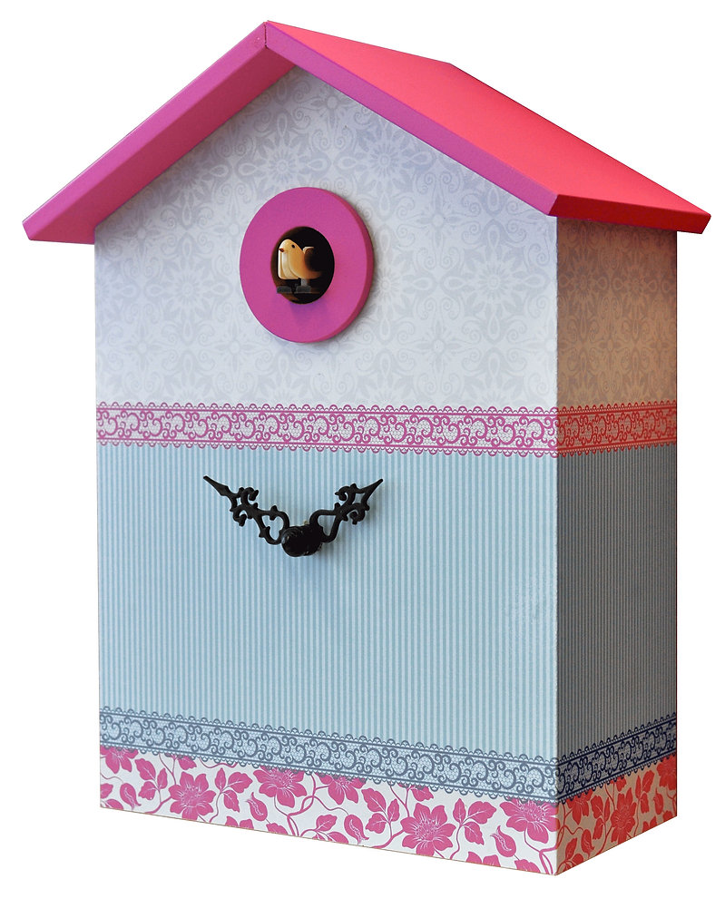 Reloj de cuco rosa (23 x 30 x 13 cm) con un diseño original y decorativo. Perfecto para el salón, el estudio o el dormitorio, combina funcionalidad y estilo, aportando un toque creativo y delicado al espacio.