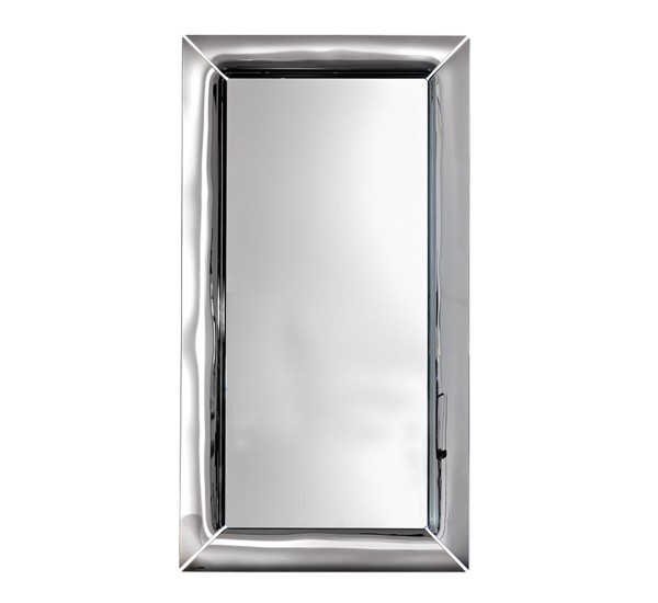 Caadre es un espejo de pared de Philippe Starck para Fiam. Espejo de 6 mm de espesor montado sobre una estructura de soporte con marco de metal pintado de color gris metalizado. Marco formado por cuatro elementos curvos individuales en la versión neutral.
