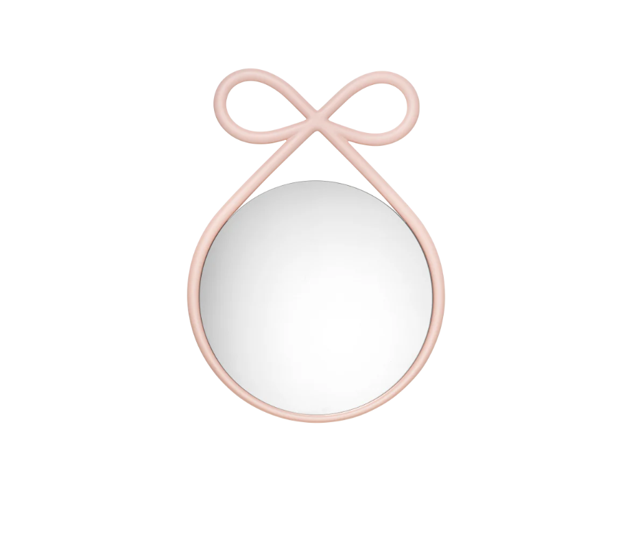 Ribbon es un espejo redondo de 55 cm de diámetro, caracterizado por un borde decorativo en forma de lazo que define su estilo romántico y distintivo.