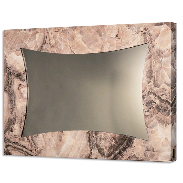 Espejo con estructura de madera, conformado y cubierto con lona impresa de alta definición.