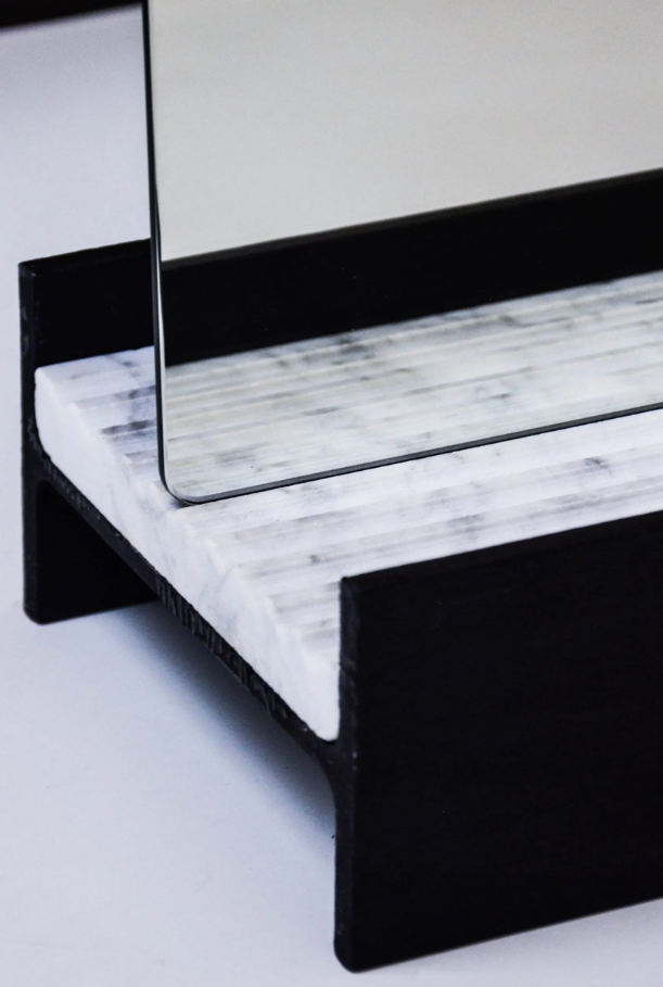 Iannis es un espejo de suelo refinado y contemporáneo que combina acero y mármol en un diseño minimalista.